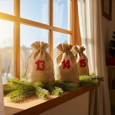 - Súprava 24 jutových vreciek s číslami 1–24