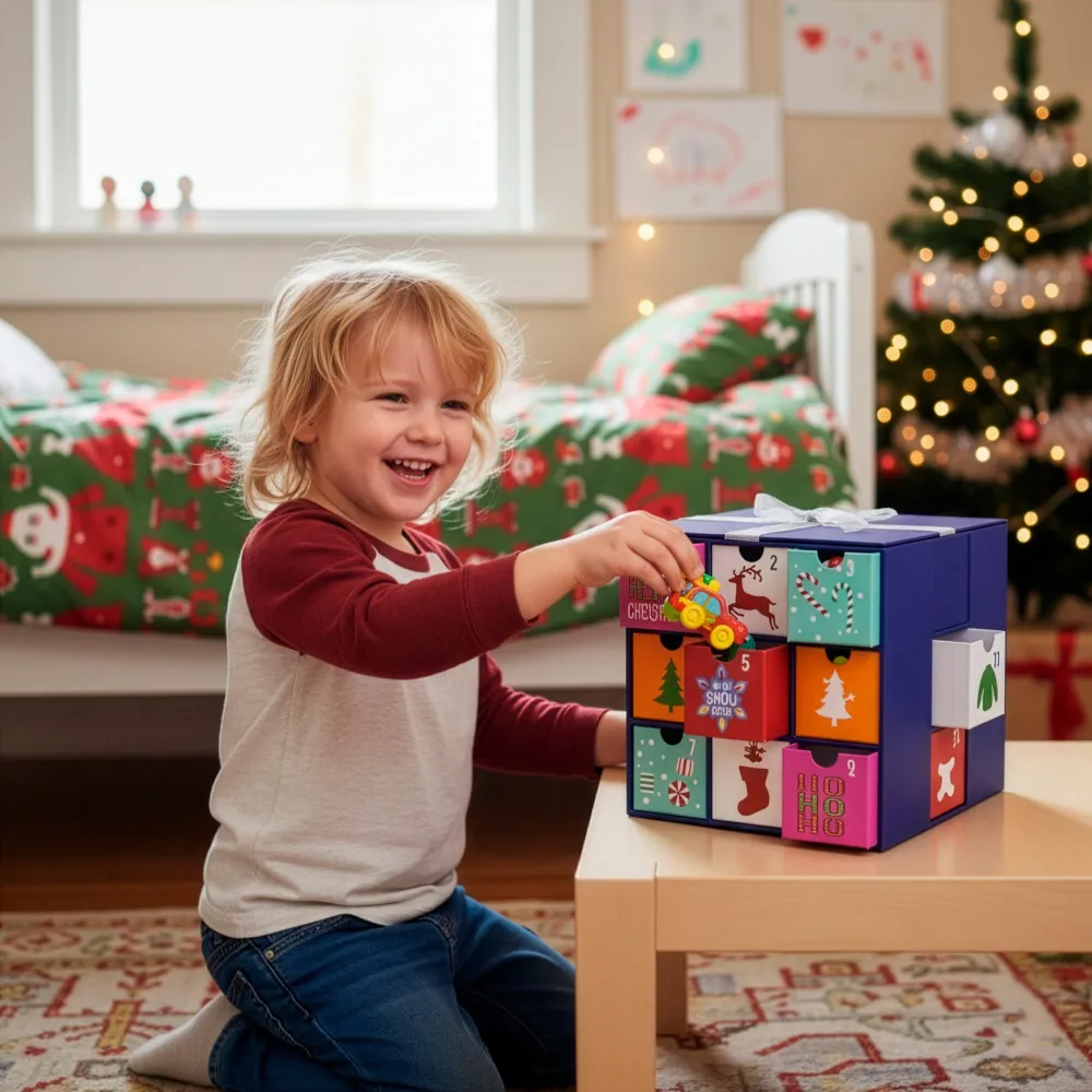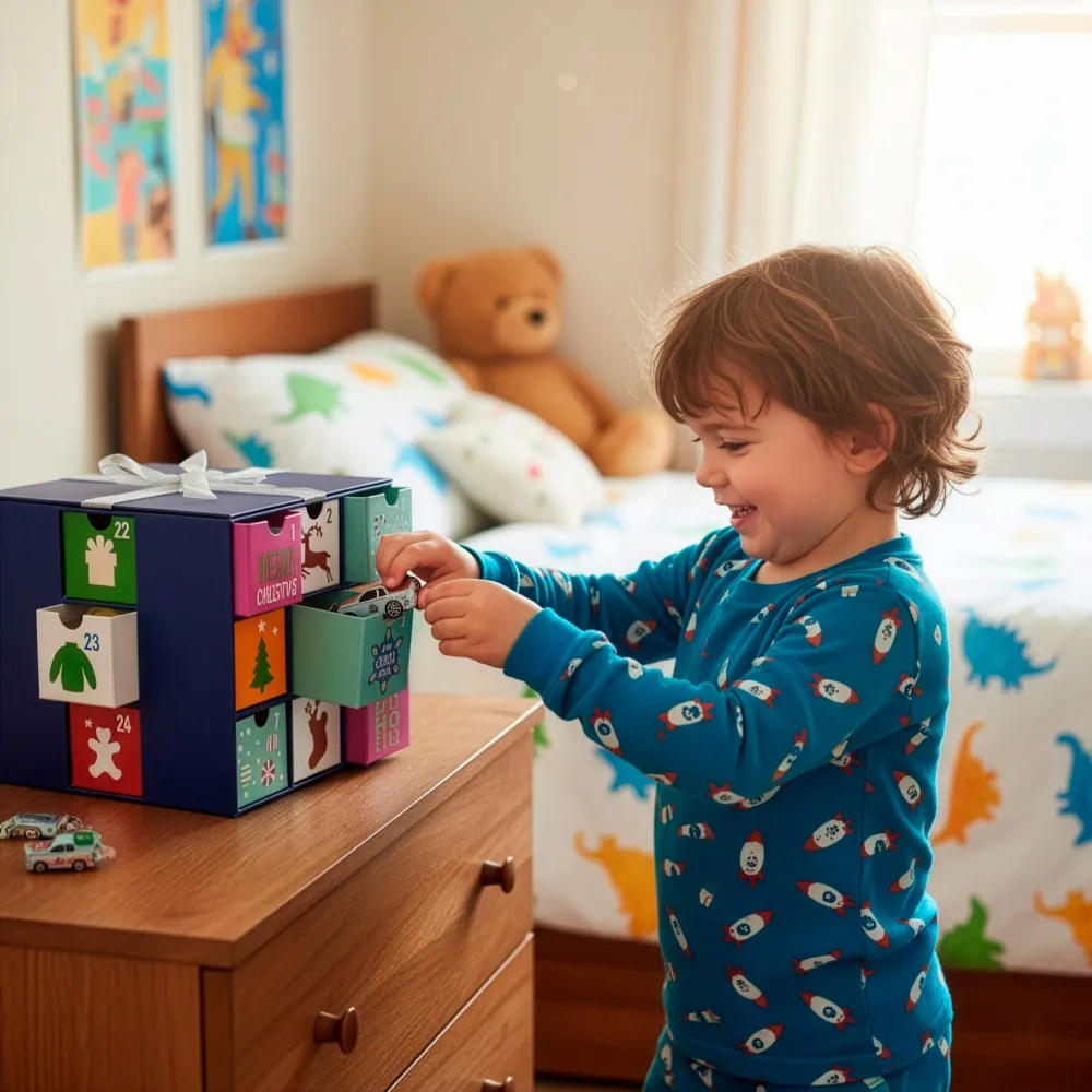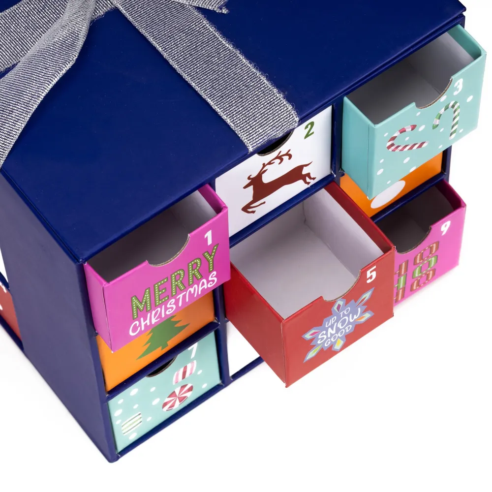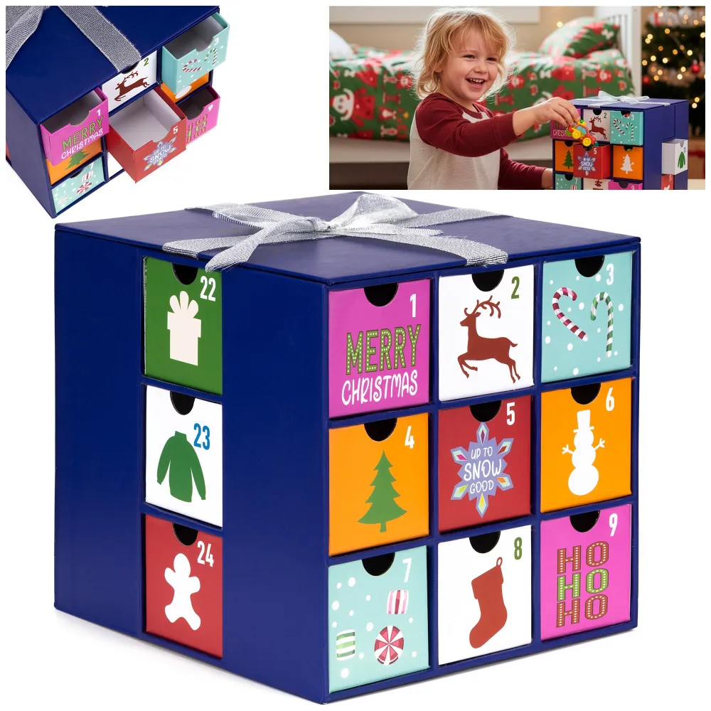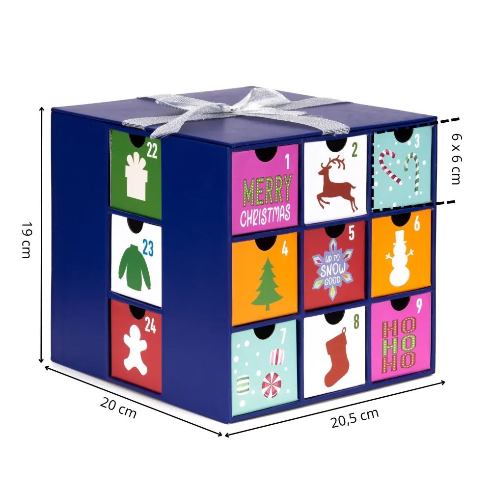 Detský adventný kalendár s 24 boxmi označenými číslami od 1 do 24 spríjemní každodenné odpočítavanie do Vianoc. Každý box zdobí farebné vianočné motívy a ponúka priestor pre malé darčeky, sladkosti alebo inšpiratívne odkazy. Štýlový doplnok, ktorý rozžiari detskú izbu aj obývací priestor a prinesie kúzelnú sviatočnú atmosféru. Celkové rozmery 20,5×19 cm.