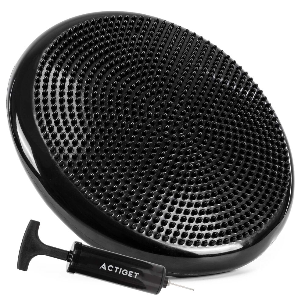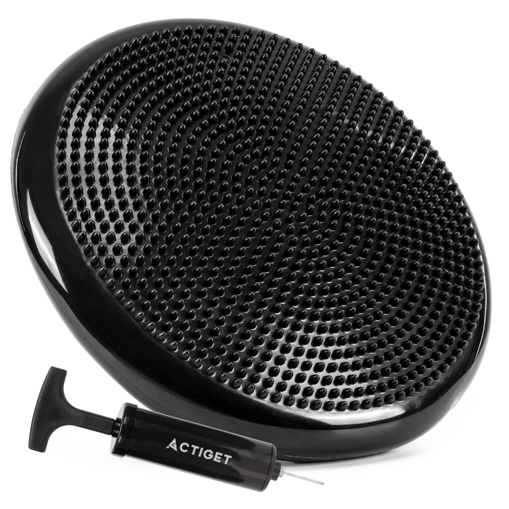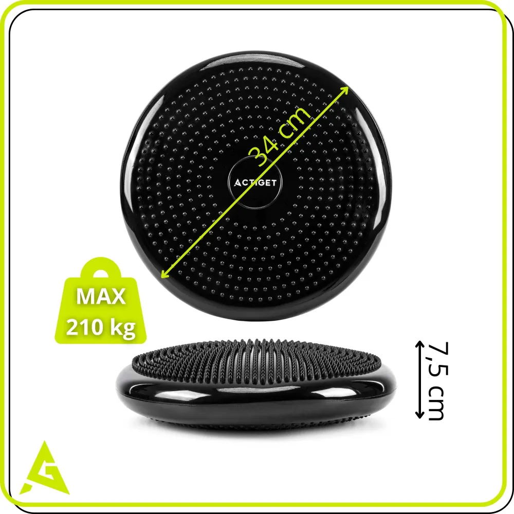 Balančná a masážna podložka + pumpička ACTIGET ACT0113 čierna je vyrobená z odolného PVC materiálu a ponúka vysokú nosnosť až 210 kg . Protišmykový povrch zaisťuje bezpečné používanie pri cvičení i sedení. Vďaka nastaviteľnej tuhosti pomocou pumpičky je možné prispôsobiť náročnosť podľa individuálnych potrieb.
