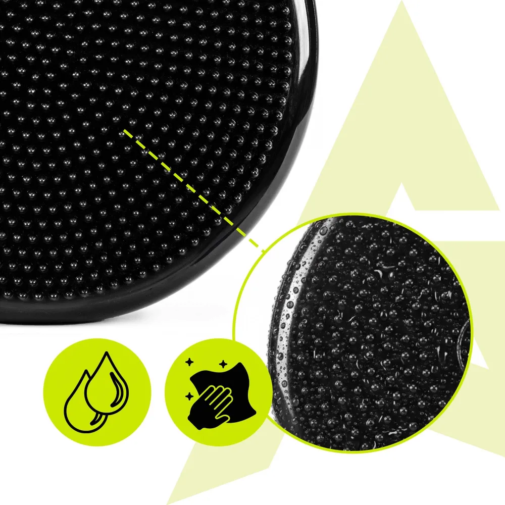 Obojstranné prevedenie s masážnymi výstupkami umožňuje dve úrovne zaťaženia – jedna strana s vyšším počtom výstupkov pre dynamickejšie zapojenie svalov , druhá s menším počtom výstupkov pre stabilnejšiu oporu. Podložka je vhodná pre tréning rovnováhy, posilnenie stredu tela, aktívne sedenie pri práci aj masáž chodidiel . Pravidelné používanie podporuje stabilitu, koordináciu aj správne držanie tela.