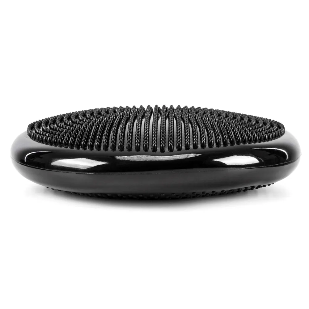 Balančný vankúš z odolného PVC s nosnosťou 210 kg a priemerom 34 cm. Obojstranné prevedenie s masážnymi výstupkami – jedna strana s vyšším počtom pre dynamickejšie zapojenie svalov, druhá s nižším pre stabilnejšiu oporu. Protišmykový povrch. Nastaviteľná tuhosť pomocou pumpičky v balení. Vhodný pre rovnováhu, cvičenie aj aktívne sedenie.