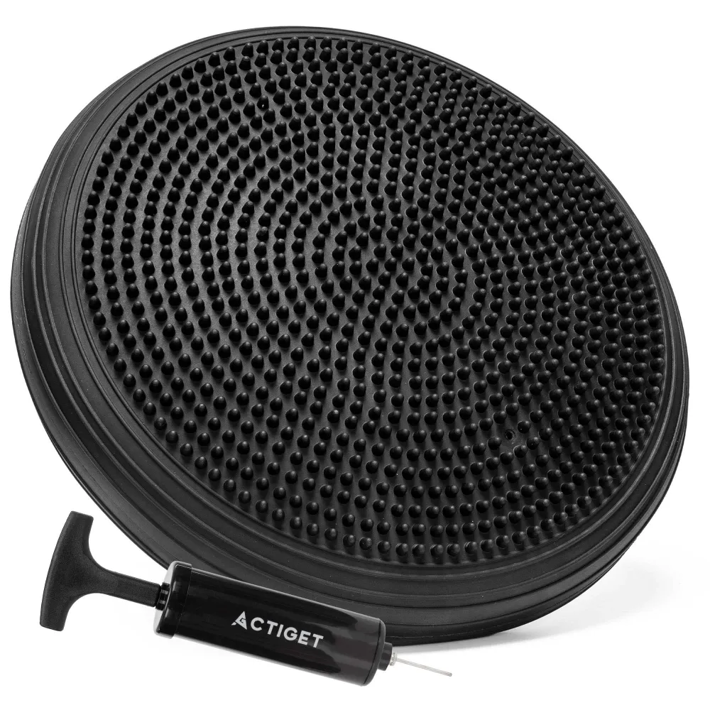 Balančná a masážna podložka + pumpička ACTIGET ACT0116 čierna kombinuje odolný PVC materiál , vysokú nosnosť až 210 kg a praktický protišmykový povrch pre bezpečné používanie. Vďaka nastaviteľnej tuhosti pomocou pumpičky je možné prispôsobiť intenzitu podľa individuálnych potrieb a úrovne tréningu.