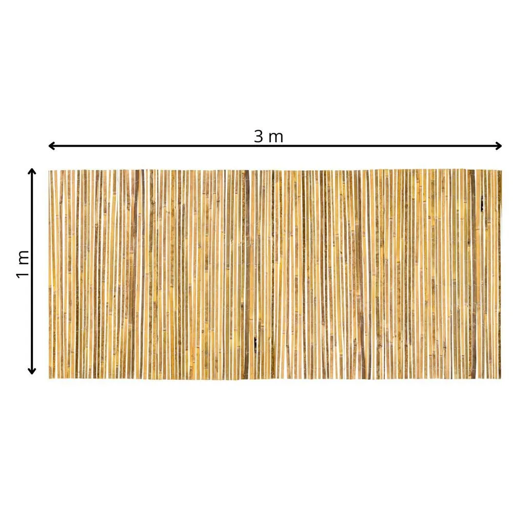 Prírodná bambusová zástena z pevných lamiel, hustým usporiadaním a vystužením pozinkovaným drôtom každých 10 cm. Zaisťuje súkromie, zatienenie a zároveň umožňuje prirodzené prúdenie vzduchu. Vhodná na ploty, balkóny aj terasy, na oddelenie priestoru alebo zakrytie nevzhľadných miest. Výška 1 m, dĺžka 3 m.