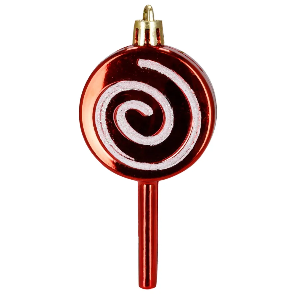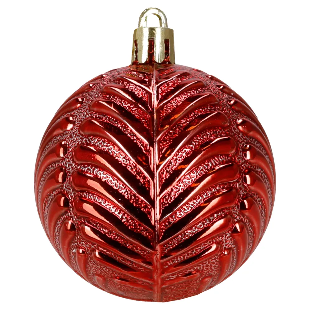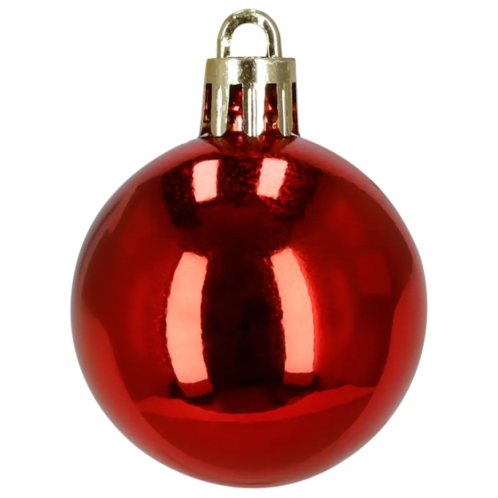 Súprava červených vianočných ozdôb v rôznych tvaroch a povrchových úpravách dodá výzdobe výrazný a hravý sviatočný vzhľad. Obsahuje ľahké, nerozbitné plastové gule, šišky aj ozdoby v tvare lízaniek a cukríkov, všetko s pútkami pre ľahké zavesenie. Vhodné na stromček aj ako dekorácia do interiéru či exteriéru. Priemery gulí: 4 cm, 5 cm a 6 cm.