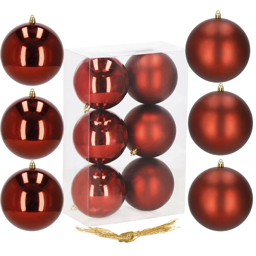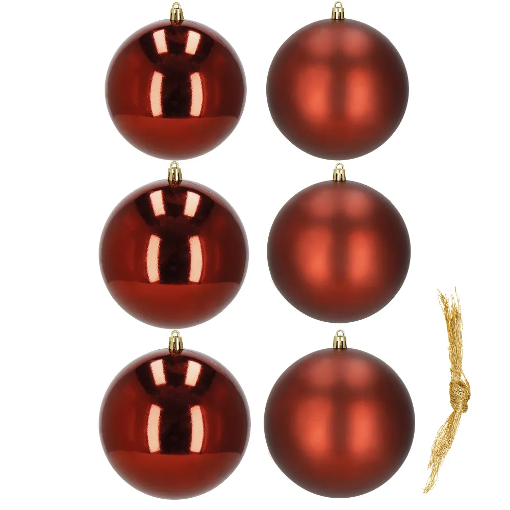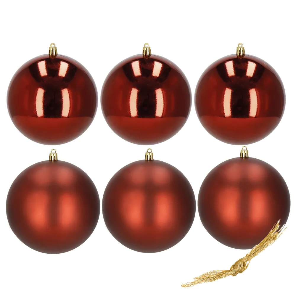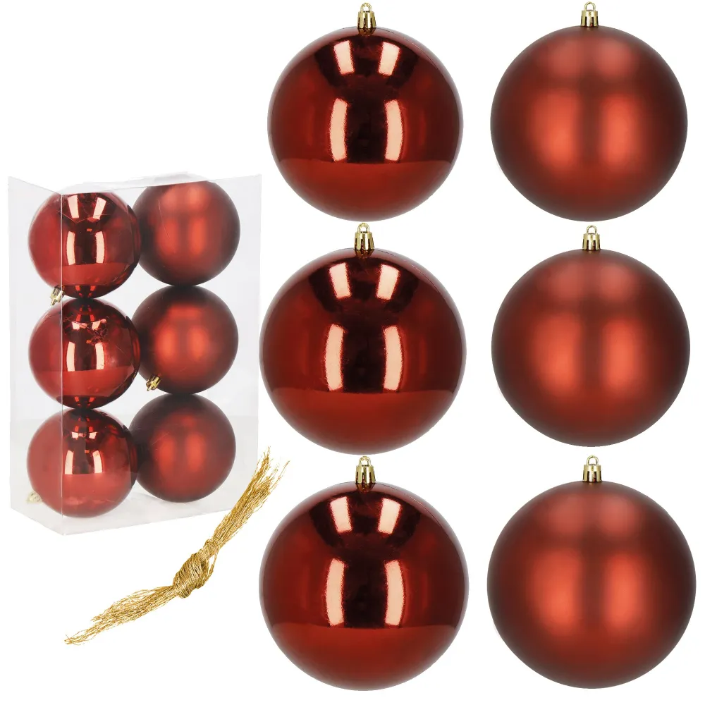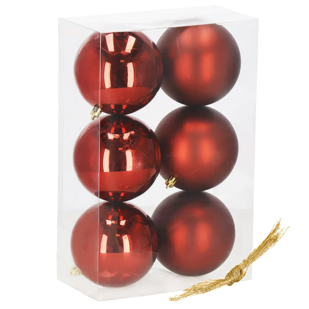 Vianočné banky červené – 10 cm súprava 6 ks sú elegantnou dekoráciou, ktorá dodá každému interiéru i vonkajšej výzdobe hrejivú slávnostnú atmosféru. Kombinácia lesklej a matnej úpravy pôsobí moderne a zároveň tradične. Sú vyrobené z ľahkého plastu, ktorý je nerozbitný , a preto sa skvele hodí aj do domácností s deťmi či domácimi miláčikmi. Vďaka možnosti opakovaného použitia sa z nich stáva dlhodobá výzdoba, ktorú využijete každý rok.