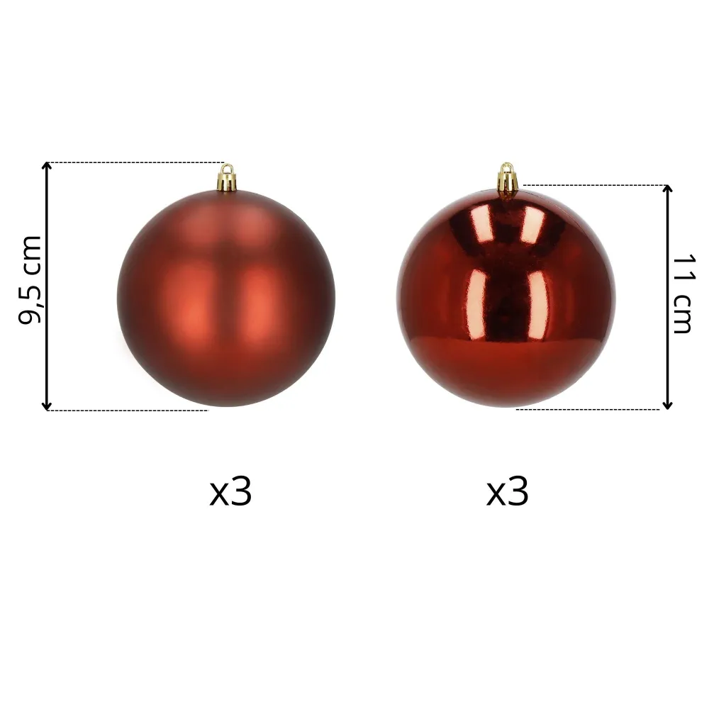 Každá guľa je vybavená praktickým očkom pre ľahké zavesenie , takže dekorovanie stromčeka, vencov alebo sviatočných aranžmánov je rýchle a pohodlné. Vďaka priemeru 9,5 cm krásne vyniknú aj na väčších stromoch či v priestrannejších miestnostiach. Set obsahuje 6 kusov, ktoré dodajú výzdobe elegantný vzhľad a príjemný červený tón, ktorý ľahko zladíte s ostatnými vianočnými ozdobami.