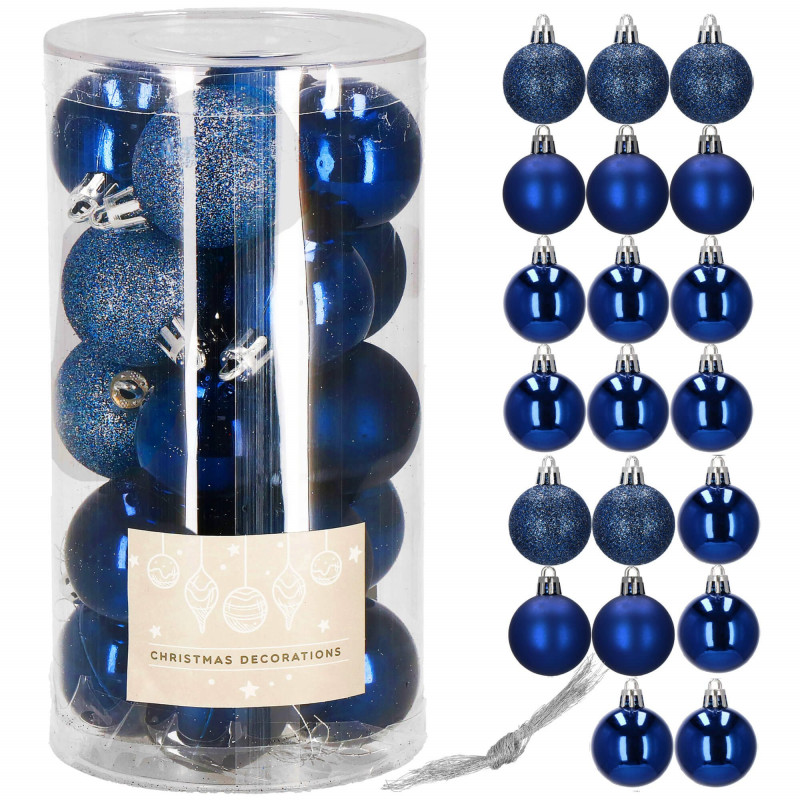 Vianočné banky tmavo modré mix - 4cm, sada 20ks