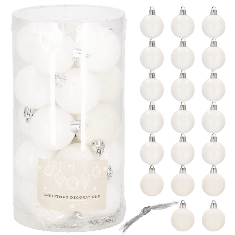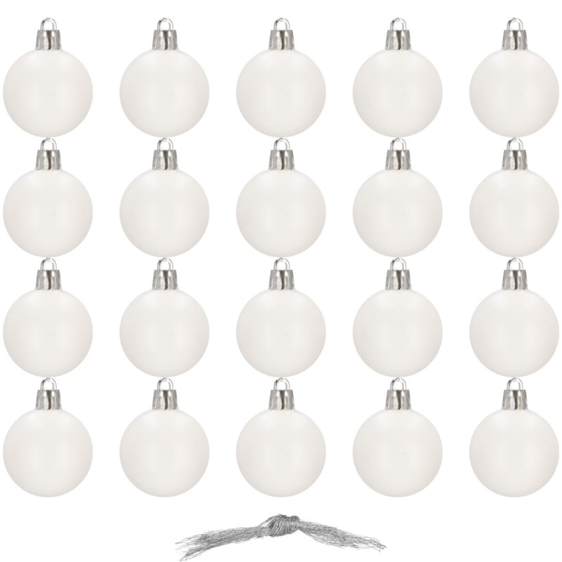 Súprava 20 ks perleťových baniek na stromček. Priemer banky je 4 cm, pútko na zavesenie, nerozbitný plastový materiál. Ideálne na výzdobu stromčeka alebo ako vianočné dekorácie. Zadarmo strieborné povrázky pre ľahké zavesenie.