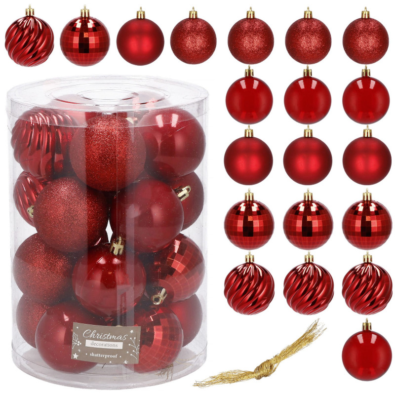 Vianočné banky červené mix - 6cm, sada 20ks