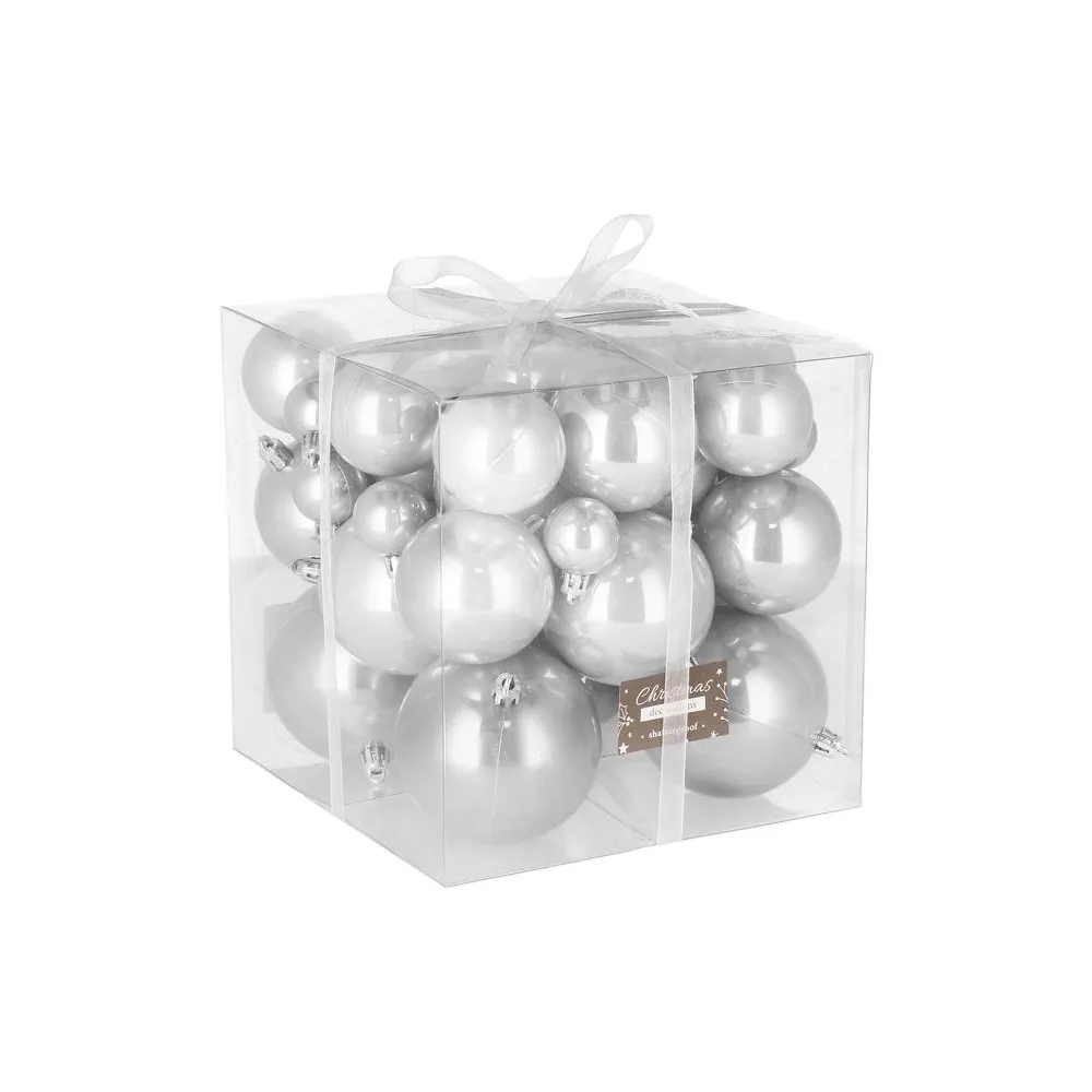 Vianočné banky strieborné - 5 veľkostí, sada 37ks