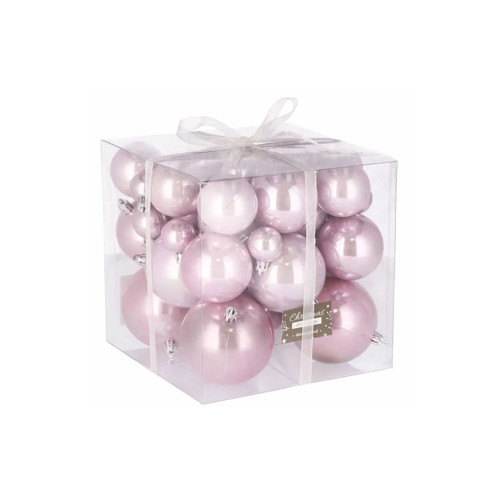 Vianočné banky ružové - 5 veľkostí, sada 37ks