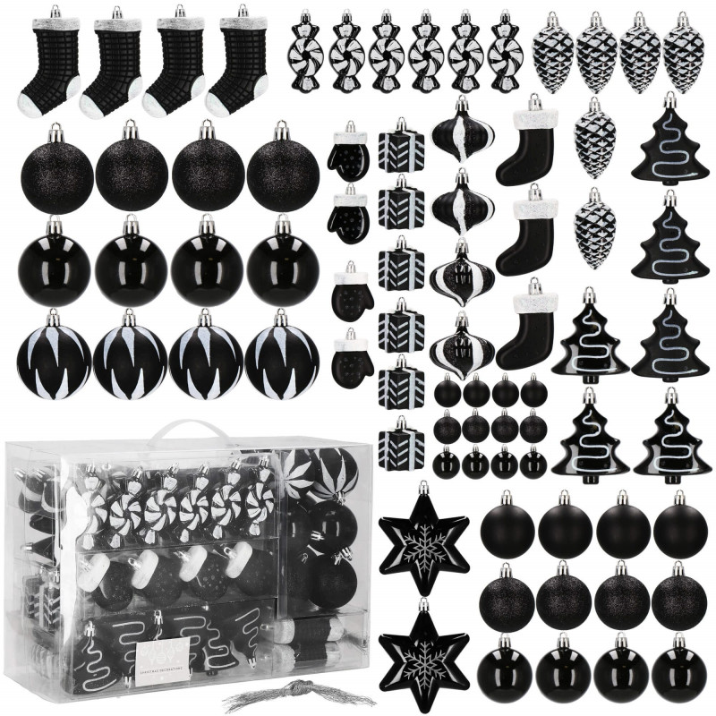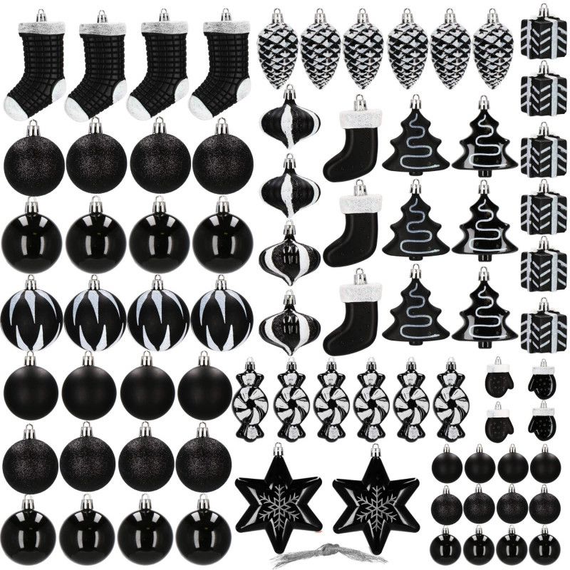 Maxi 77 dielna sada vianočných ozdôb čierna