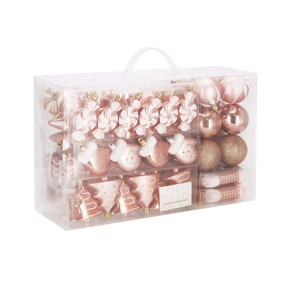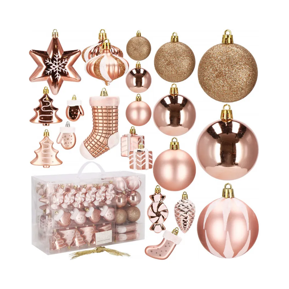 Vianočné banky ružovo-zlaté mix - 3cm, maxi sada 54ks
