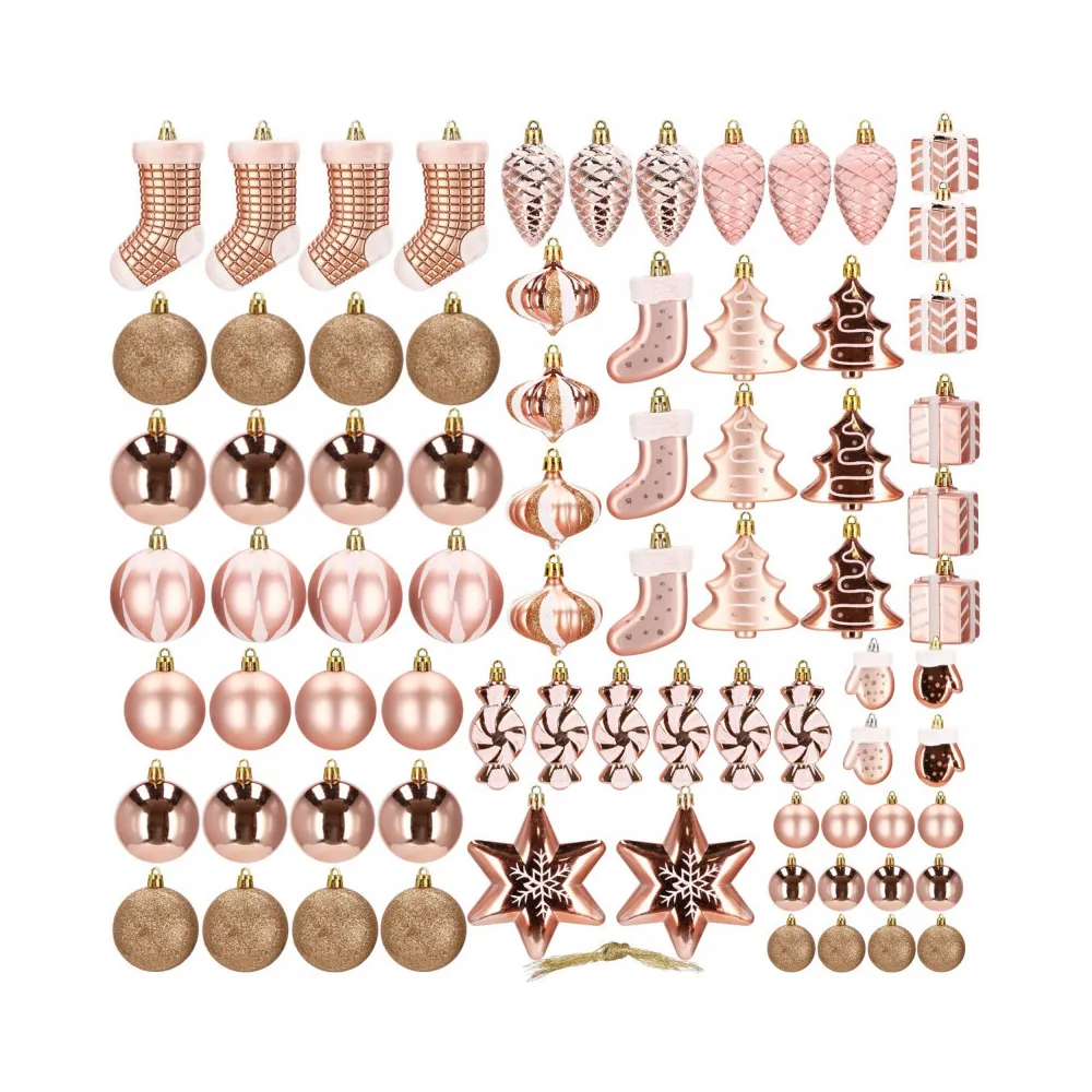 Luxusná 77 dielna sada vianočných ozdôb na stromček. Set tvorí 21 rôznych vzorov ozdôb zlatej farby. Všetko z nerozbitného plastového materiálu. Ideálne na výzdobu stromčeka alebo ako vianočné dekorácie. Zadarmo povrázky pre ľahké zavesenie.