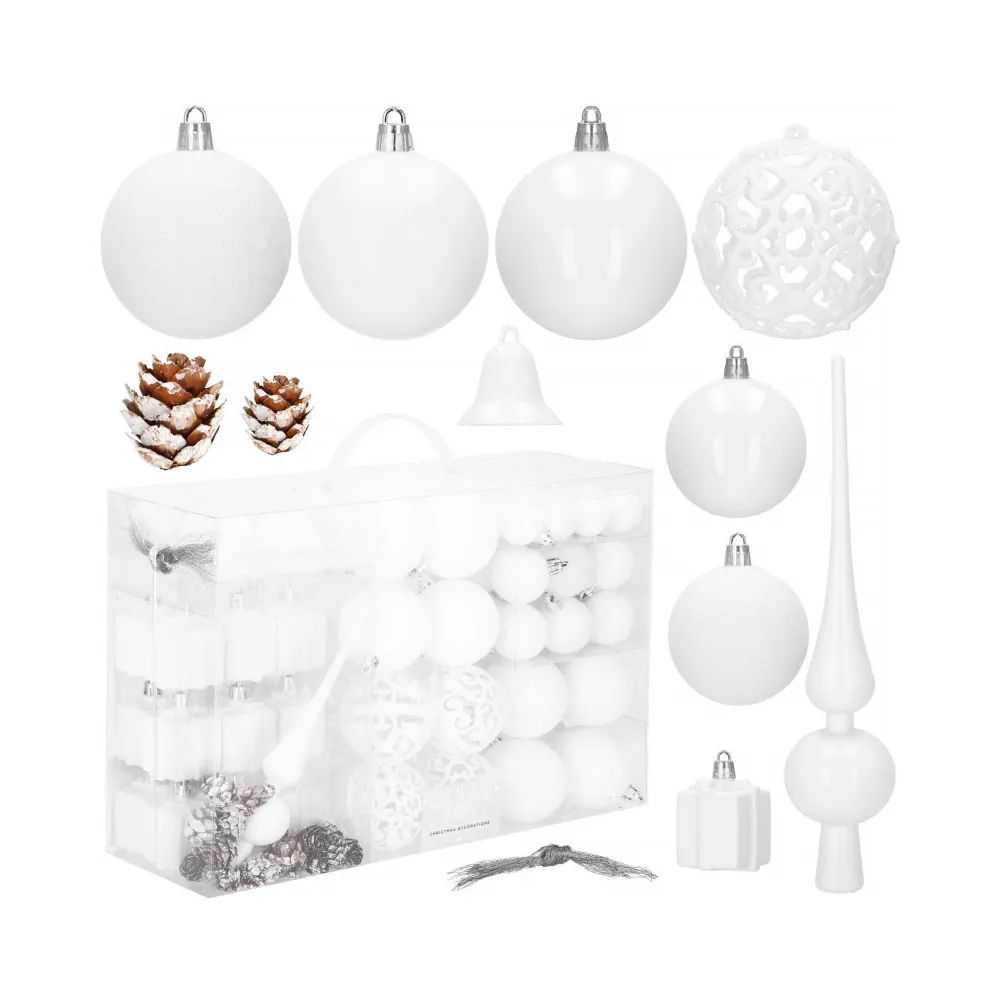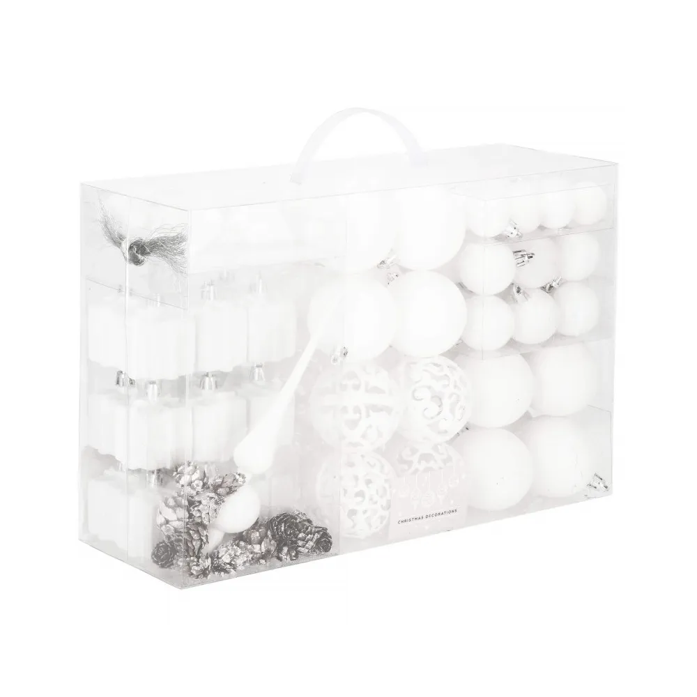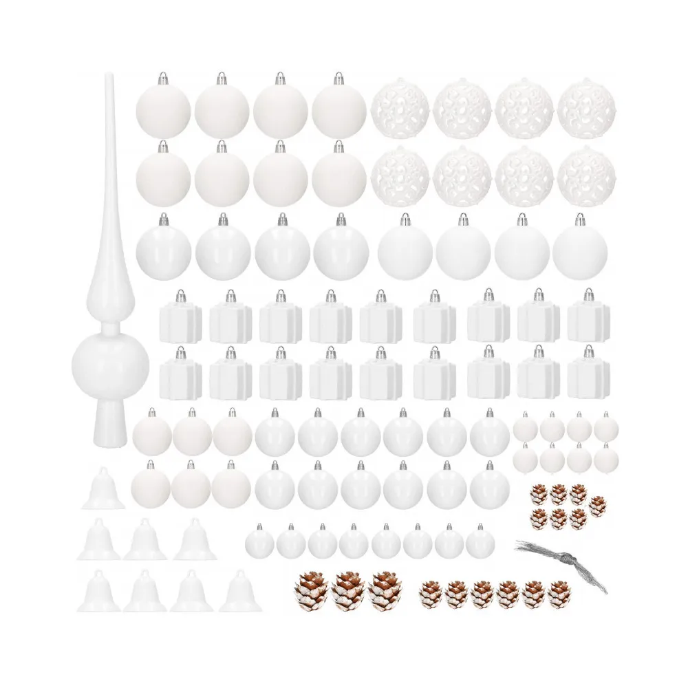 Maxi 100 dielna sada vianočných ozdôb biela so šiškami