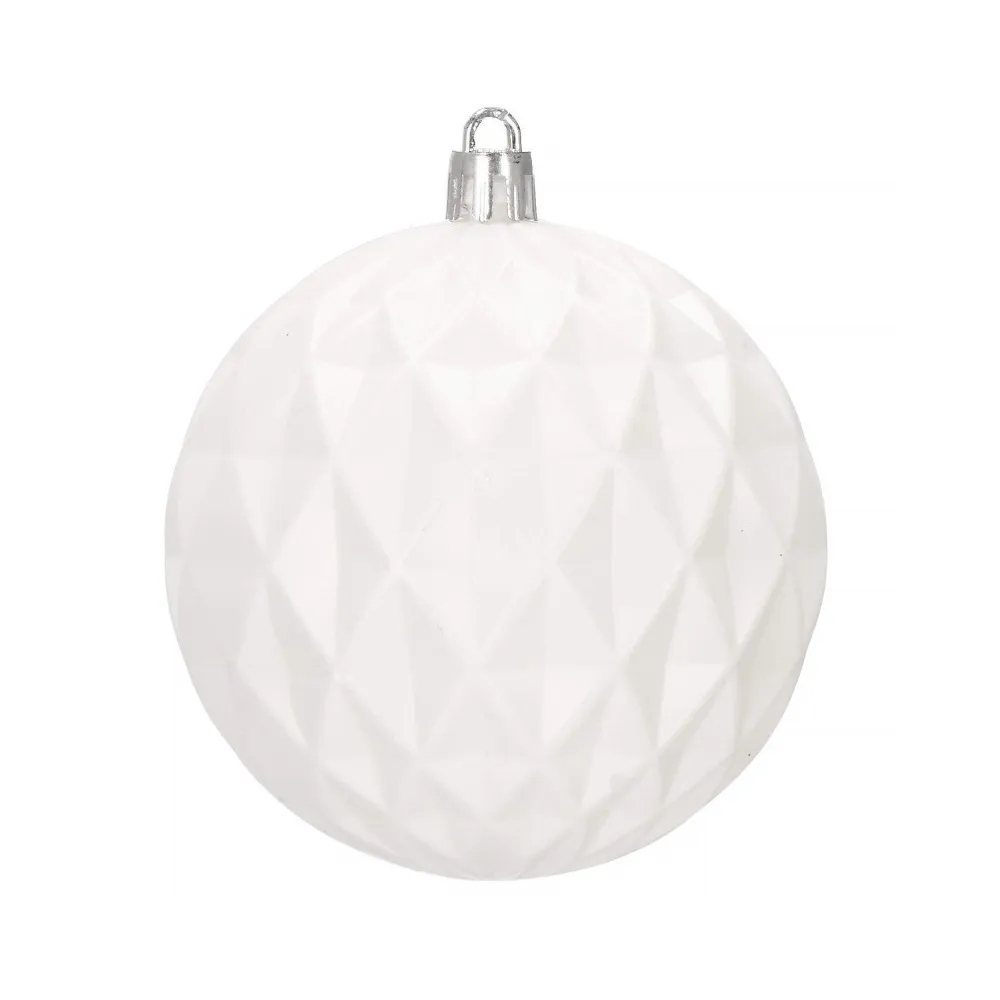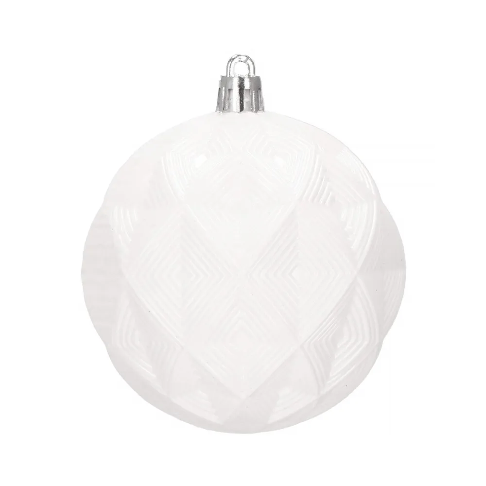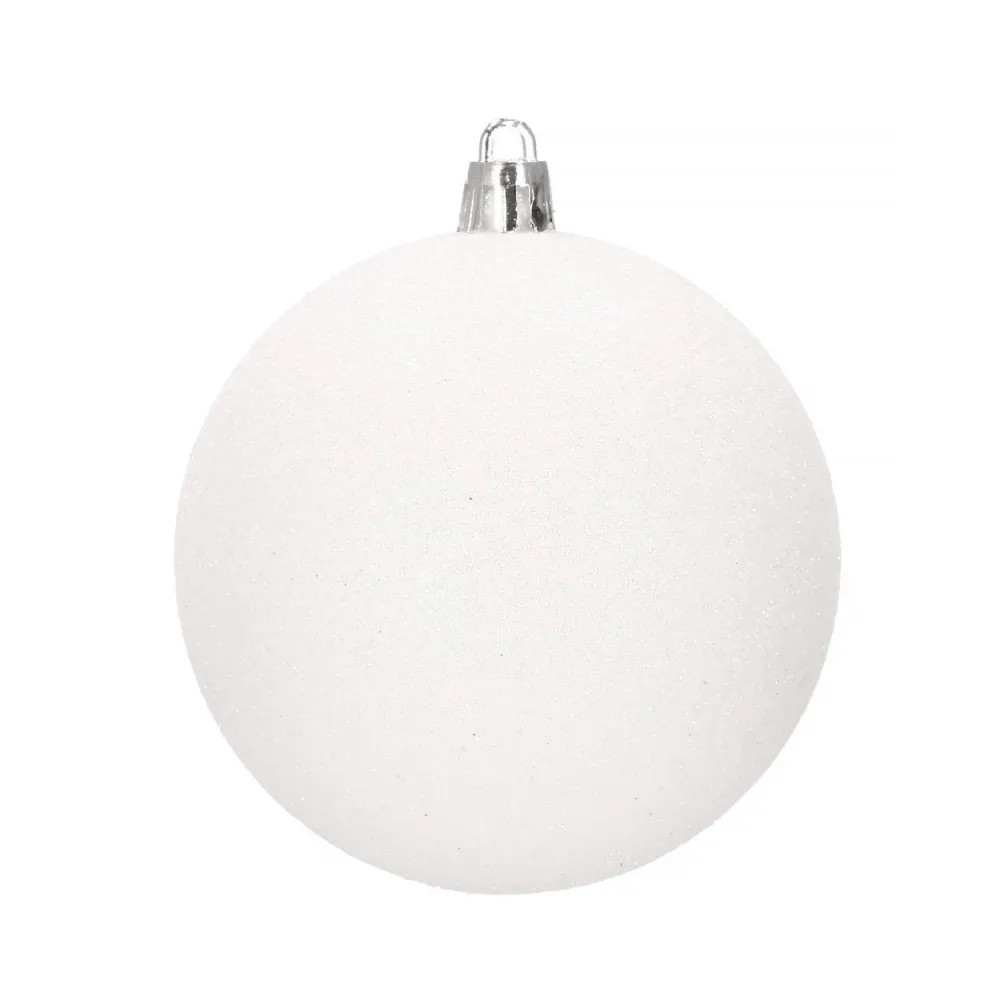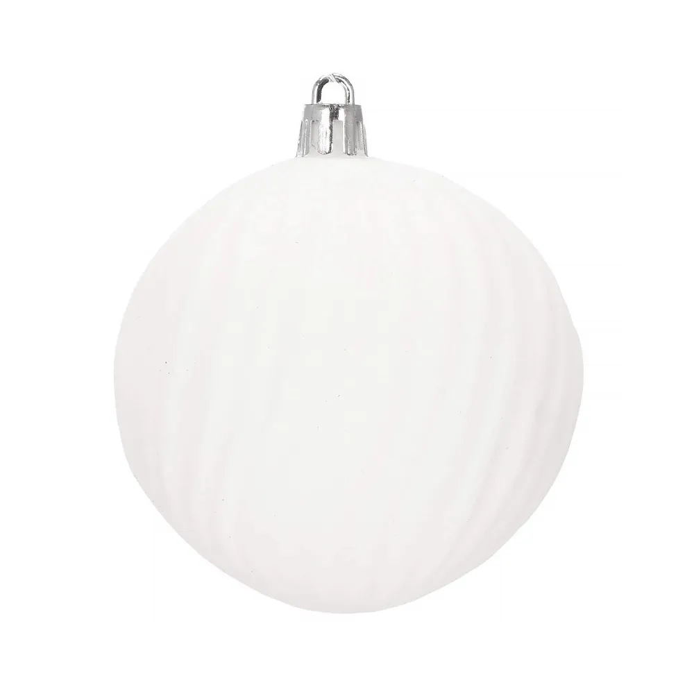 Sada 30 ks bielych baniek na stromček so šiestimi rôznymi vzormi. Priemer banky je 8 cm. Pútko na zavesenie, nerozbitný plastový materiál. Ideálne na výzdobu stromčeka alebo ako vianočné dekorácie. Zadarmo povrázky pre ľahké zavesenie.