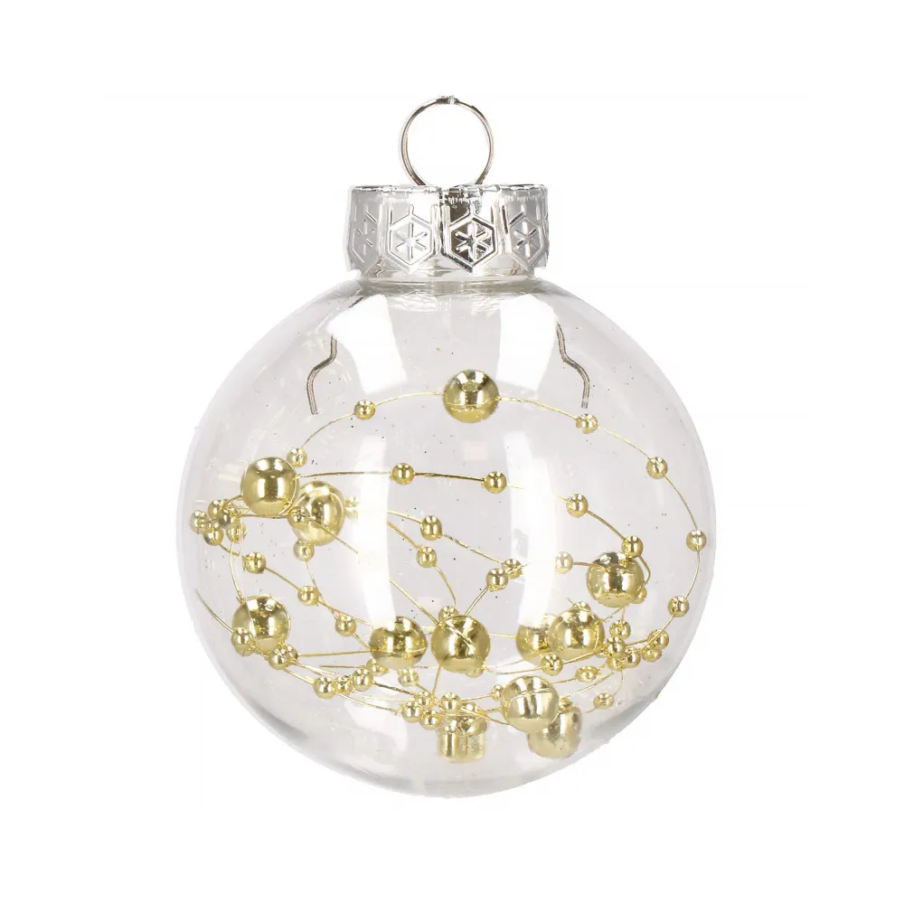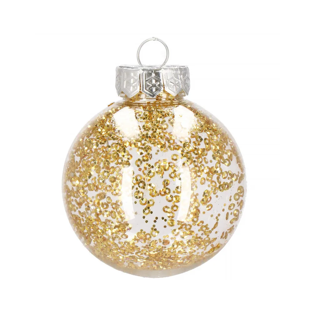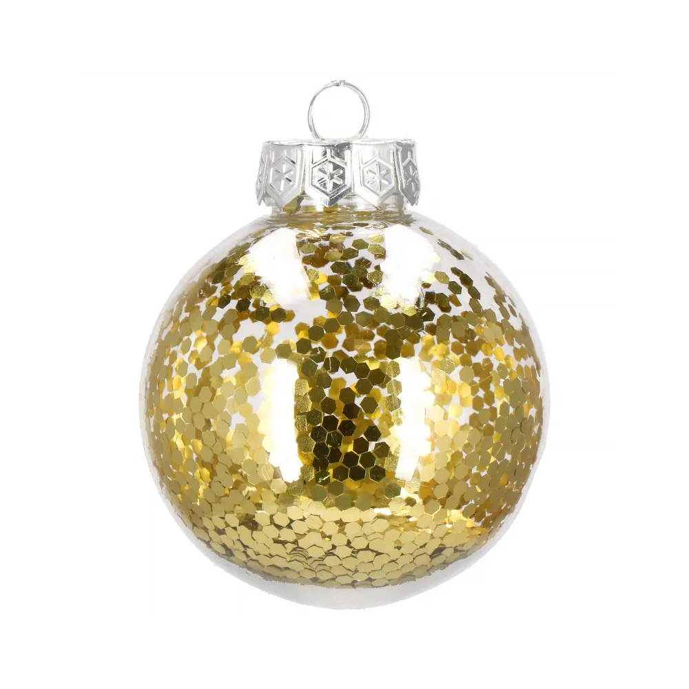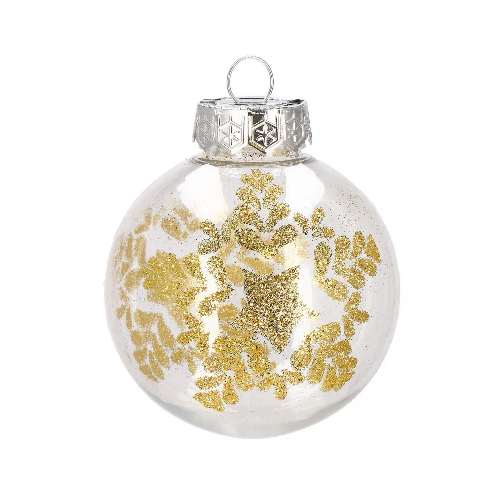 Sada 30 ks priehľadných baniek na stromček s piatimi rôznymi vzormi a vnútornou výplňou . Priemer banky 7 cm, pútko na zavesenie, nerozbitný plastový materiál. Ideálne na výzdobu stromčeka alebo ako vianočné dekorácie. Zadarmo povrázky pre ľahké zavesenie.