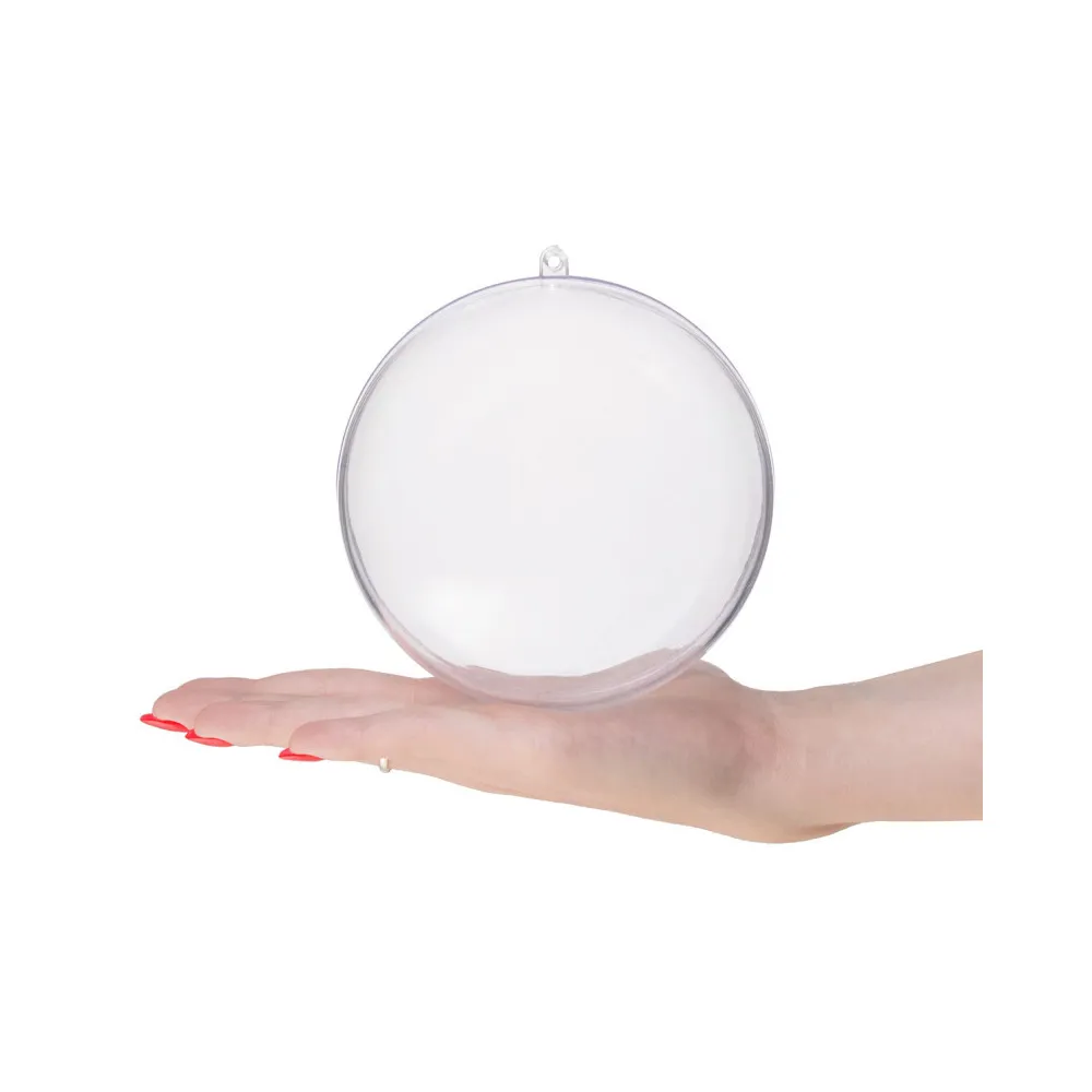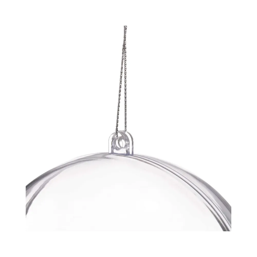 Priehľadná plastová banka v tvare gule s možnosťou vytvorenia originálnej ozdoby. Ozdobte si vianočnú banku na stromček podľa svojich predstáv. Priemer 11 cm, nerozbitný plastový materiál, pútko a povrázok na zavesenie.