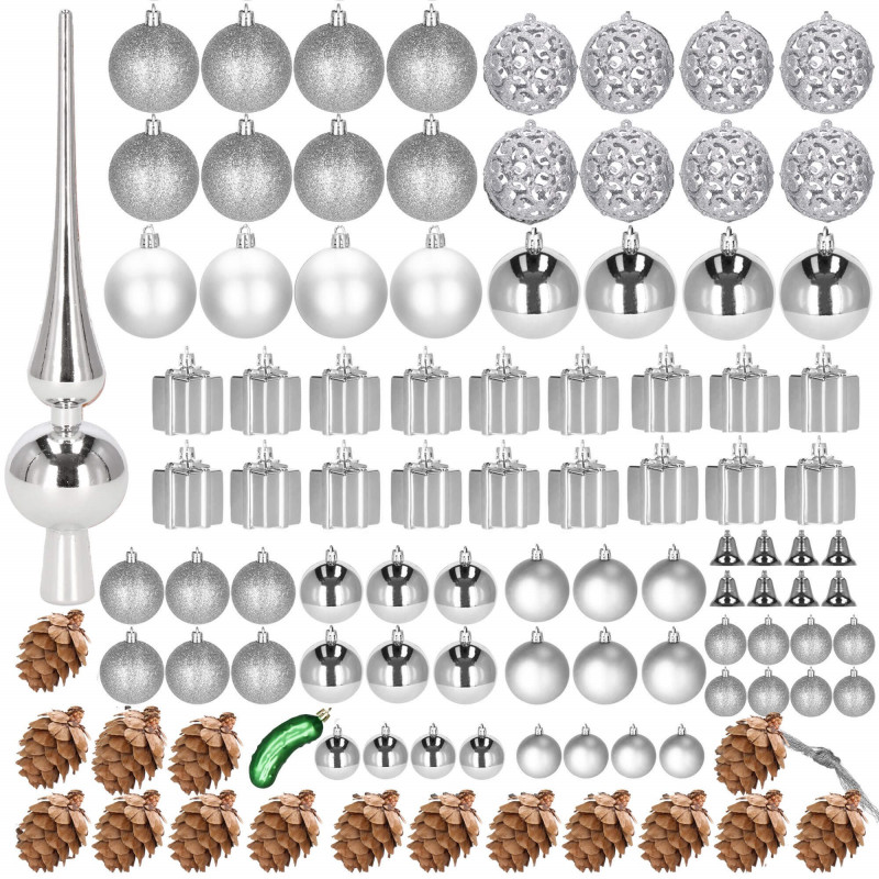 Maxi 102 dielna sada vianočných ozdôb strieborná