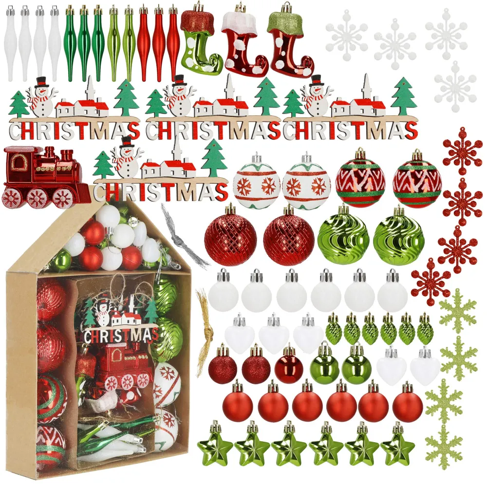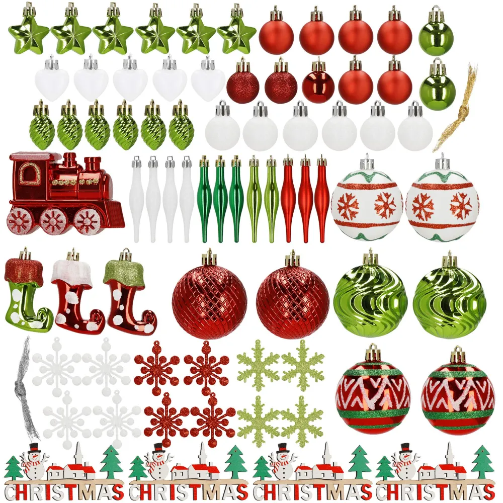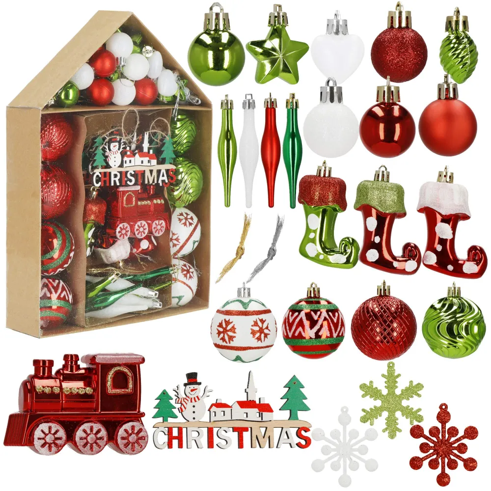 Luxusná 74 dielna sada vianočných ozdôb na stromček. Set tvorí 9 rôznych vzorov farebných ozdôb v krásnom balení. Všetko z nerozbitného plastového materiálu. Ideálna ozdoba na zavesenie na stromček alebo ako vianočné dekorácie. Zadarmo povrázky pre ľahké zavesenie.