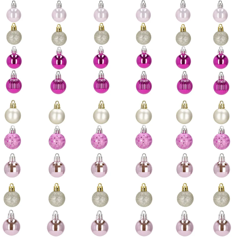 Vianočné banky ružovo-zlaté mix - 3cm, maxi sada 54ks