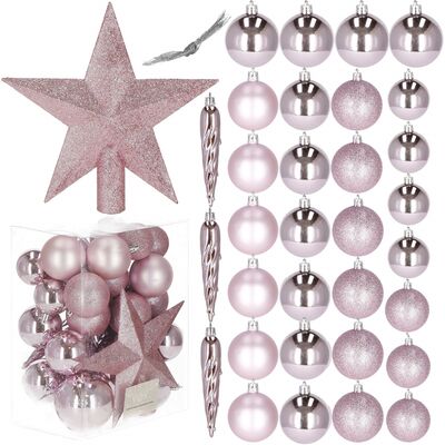 Luxusná 33 dielna sada vianočných ozdôb na stromček. Set tvoria 3 rôzne vzory ozdôb ružovej farby + prekrásna hviezda na špičku stromčeka. Všetko z nerozbitného plastového materiálu. Ideálne na výzdobu stromčeka alebo ako vianočné dekorácie. Zadarmo povrázky pre ľahké zavesenie.