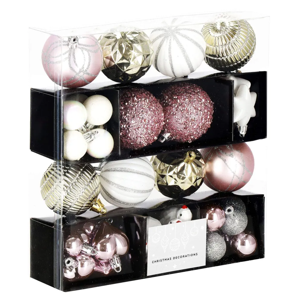 Vianočné ozdoby ružovo-biele mix - sada 38ks