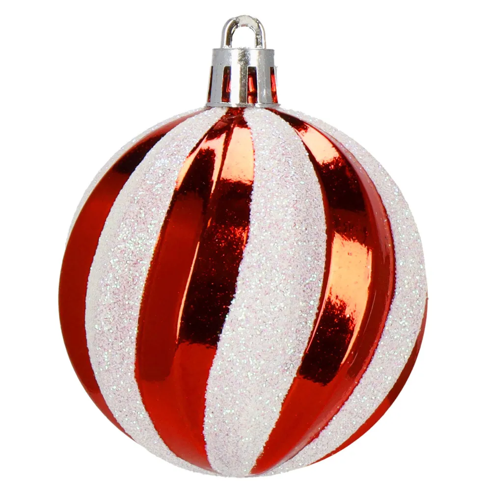 Vianočné banky červeno-strieborné mix - 6cm, sada 24ks