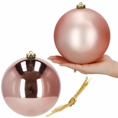 Sada 2 ks XXL ružových baniek na stromček s dvoma rôznymi vzormi. Priemer banky 15 cm, pútko na zavesenie, nerozbitný plastový materiál. Ideálna ako vianočná ozdoba stromčeka alebo ako vianočná dekorácia. Zadarmo povrázky pre ľahké zavesenie.