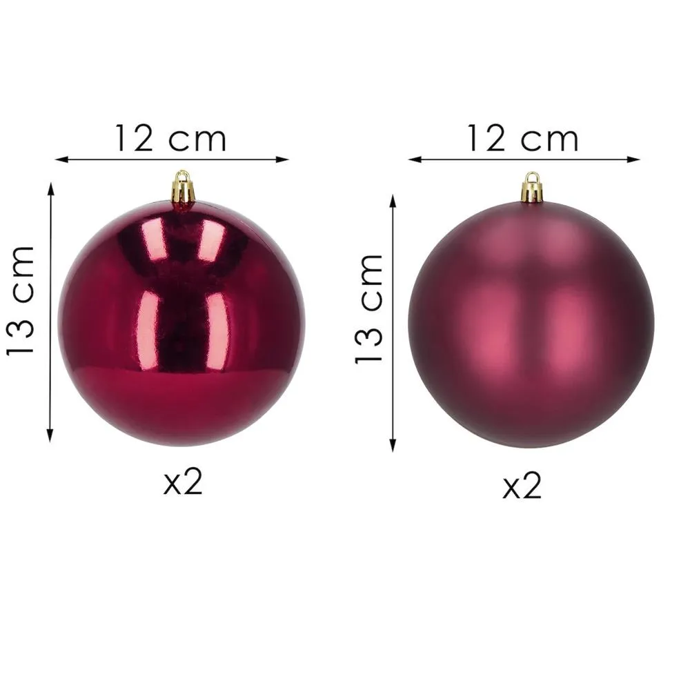 Vianočné banky XL vínovej mix - 12cm, sada 4ks