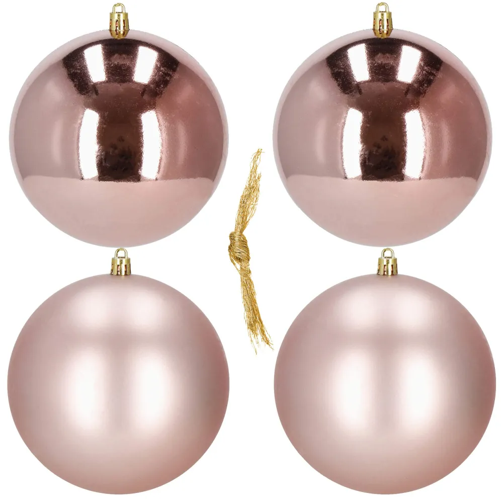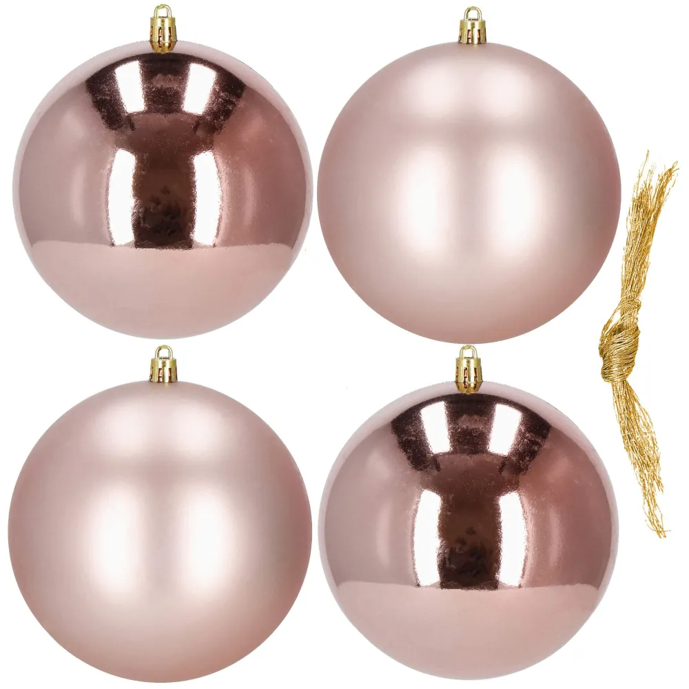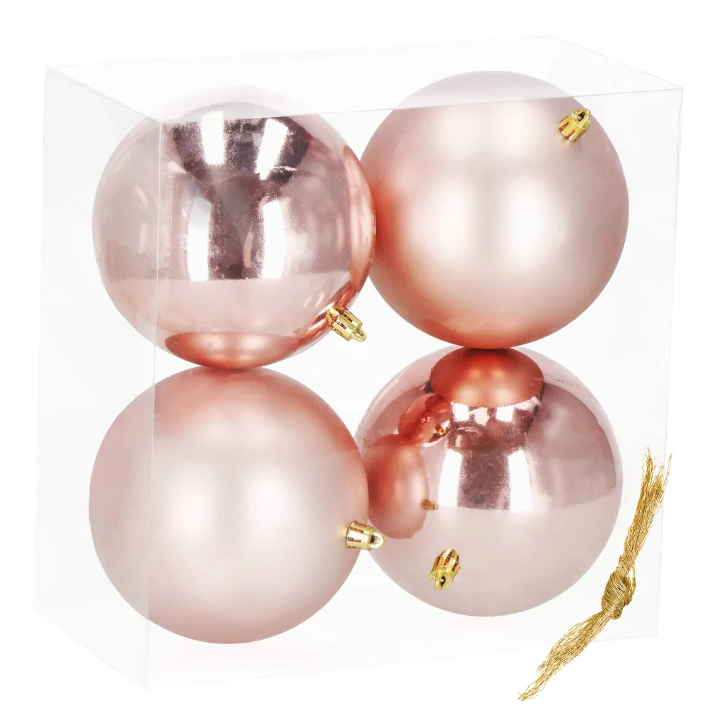 Sada 4 ks XL ružových baniek na stromček s dvoma rôznymi vzormi. Priemer banky 12 cm, pútko na zavesenie, nerozbitný plastový materiál. Krásna ozdoba vianočného stromčeka alebo ako vianočná dekorácia. Zadarmo povrázky pre ľahké zavesenie.