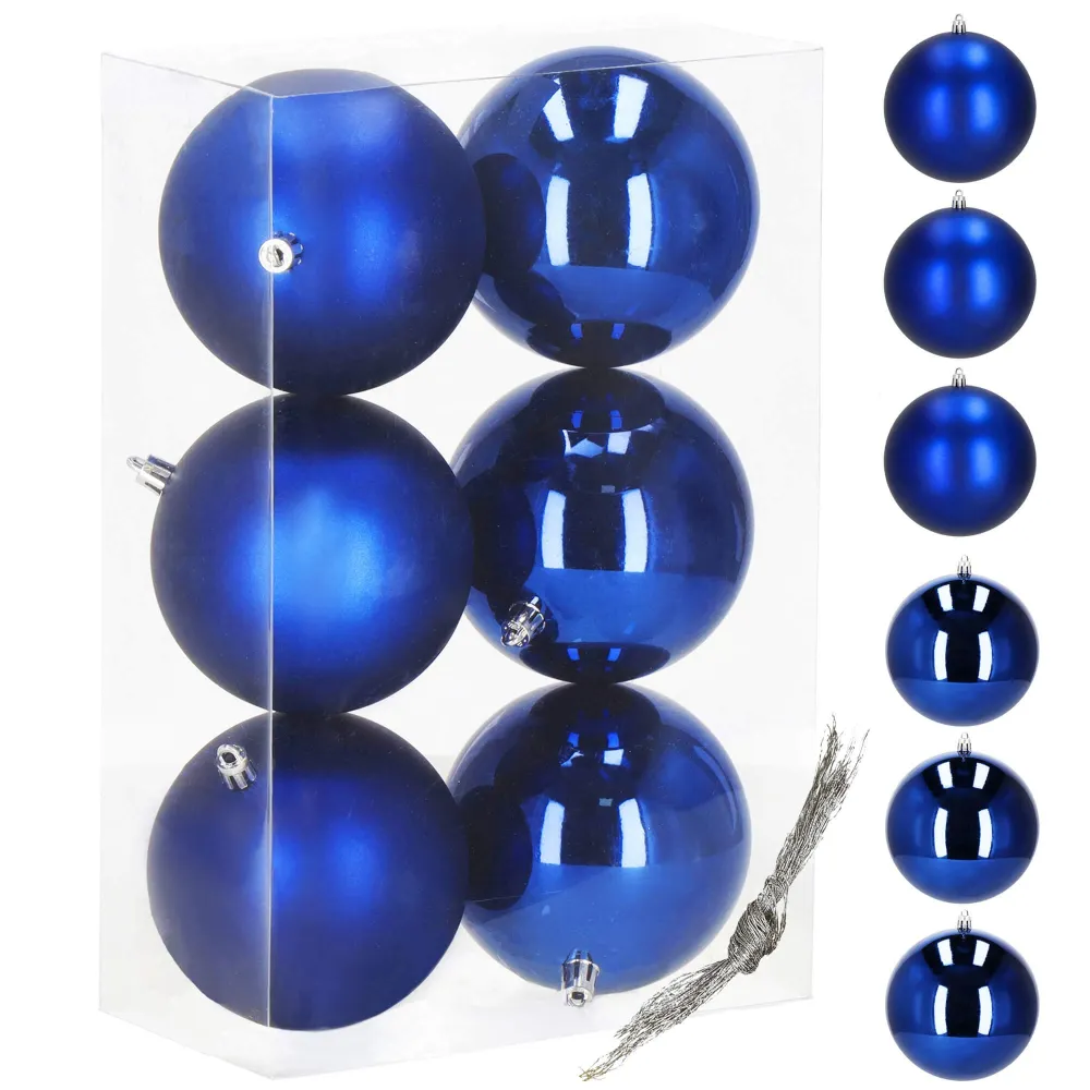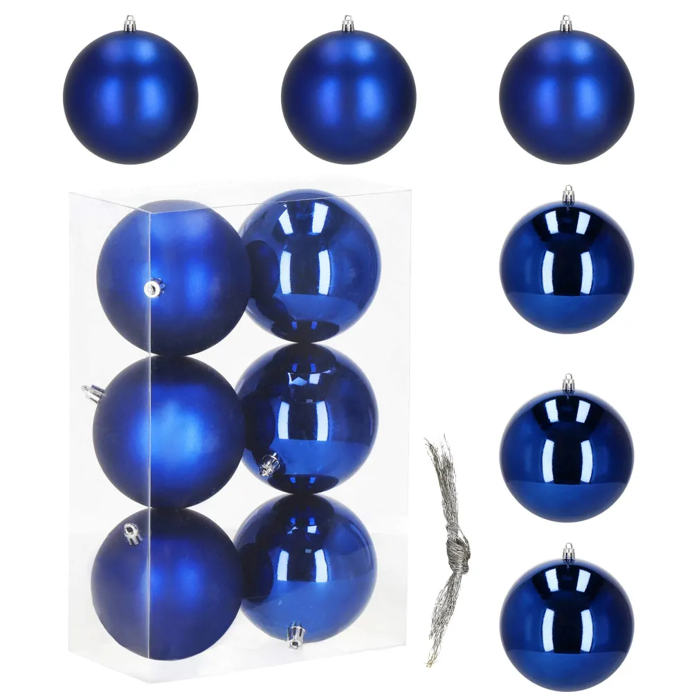 Sada 6 ks modrých baniek na stromček s dvoma rôznymi vzormi. Priemer banky 10 cm, pútko na zavesenie, nerozbitný plastový materiál. Ideálna ako ozdoba vianočného stromčeka alebo ako vianočná dekorácia. Zadarmo povrázky pre ľahké zavesenie.
