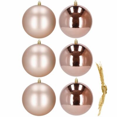 Sada 6 ks ružovo-zlatých baniek na stromček s dvoma rôznymi vzormi. Priemer banky 10 cm, pútko na zavesenie, nerozbitný plastový materiál. Ideálna ozdoba na zavesenie na stromček alebo ako vianočné dekorácie. Zadarmo povrázky pre ľahké zavesenie.