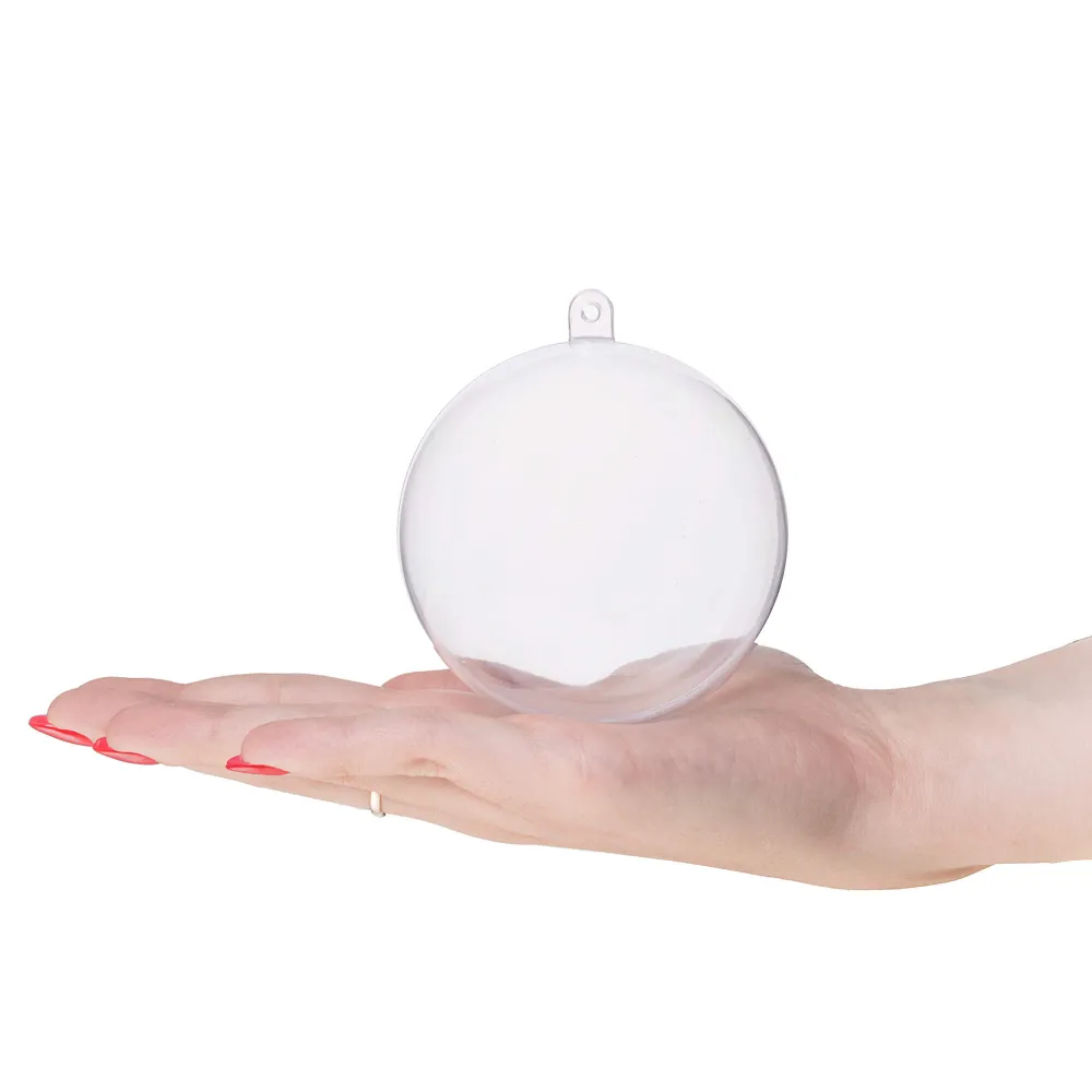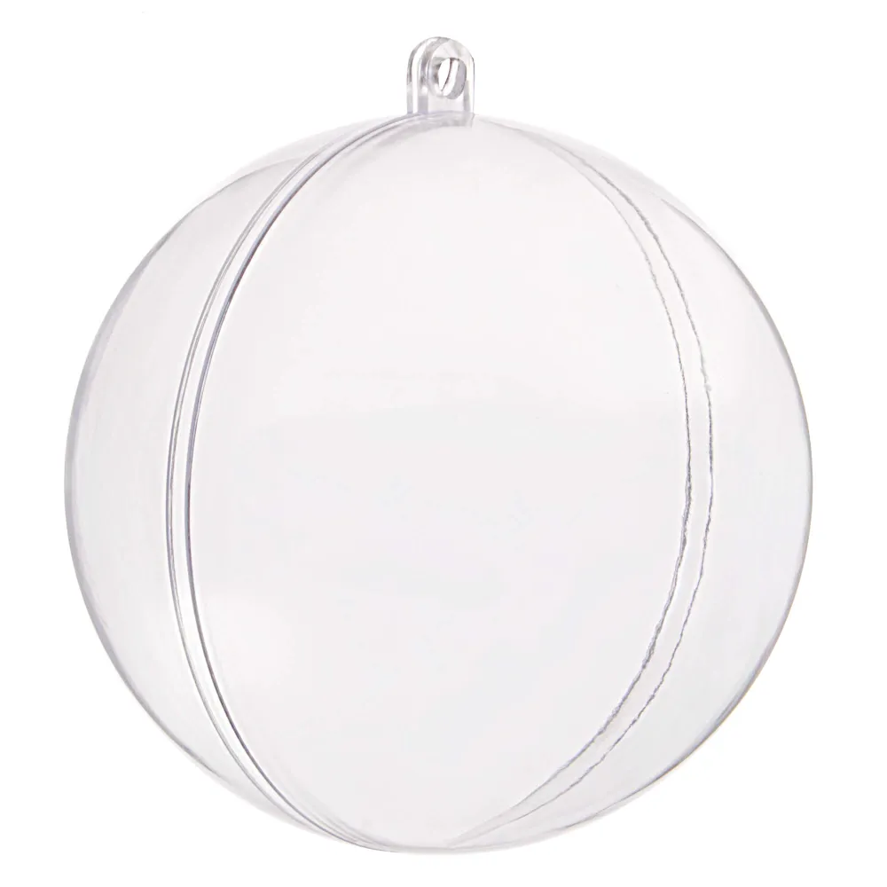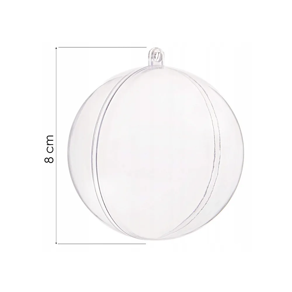 Priehľadná plastová banka v tvare gule s možnosťou vytvorenia originálnej ozdoby. Ozdobte si vianočnú banku na stromček podľa svojich predstáv. Priemer 8 cm, nerozbitný plastový materiál, pútko a povrázok na zavesenie.