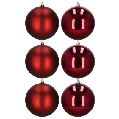 Elegantná sada vianočných ozdôb v červenom mixe dodá vašej výzdobe tradičný a slávnostný nádych. Gule s priemerom 12 cm sú ideálne na vianočný stromček aj ako samostatná dekorácia. Vyrobené z nerozbitného plastu, vhodné na vnútorné aj vonkajšie použitie. Súčasťou balenia sú pútka na zavesenie. Celkom 6 kusov v sade.