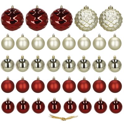 Štýlová sada vianočných ozdôb v elegantnej kombinácii zlatej a červenej farby vnesie do vášho domova tradičnú sviatočnú atmosféru. Guľa rôznych veľkostí sa skvele hodí na vianočný stromček aj ako dekorácia do interiéru. Vyrobené z nerozbitného plastu, vhodné na vnútorné aj vonkajšie použitie. Súčasťou balenia sú pútka na zavesenie. Priemer gulí 12 a 6 cm, celkom 37 kusov.