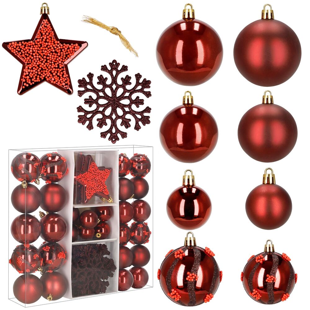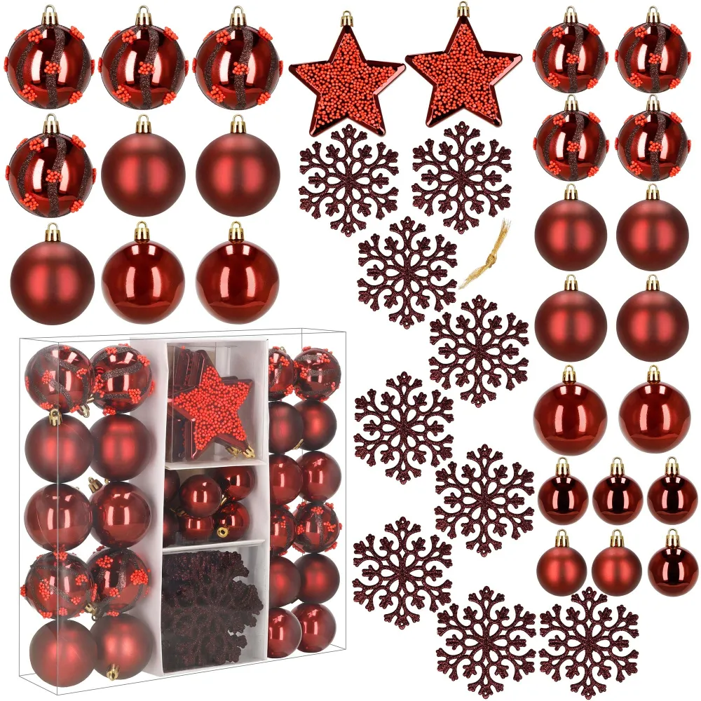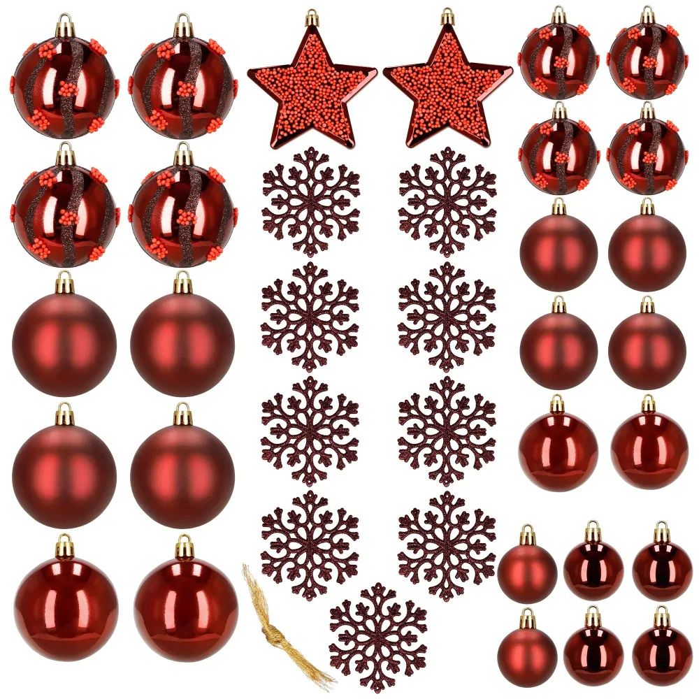 Štýlová sada vianočných ozdôb v červenom mixe dodá vašej výzdobe klasický a hrejivý vzhľad. Obsahuje gule rôznych veľkostí aj tvary hviezd a vločiek, ideálne na vianočný stromček alebo iné dekorácie. Vyrobené z nerozbitného plastu, vhodné na vnútorné aj vonkajšie použitie. Súčasťou balenia sú pútka na zavesenie. Celkom 40 kusov v sade.