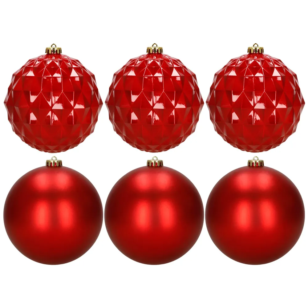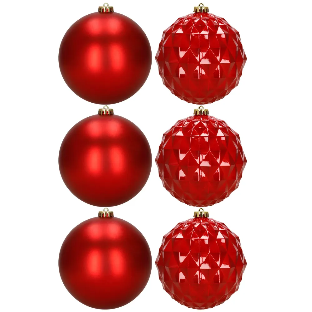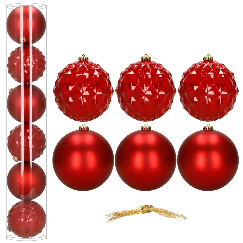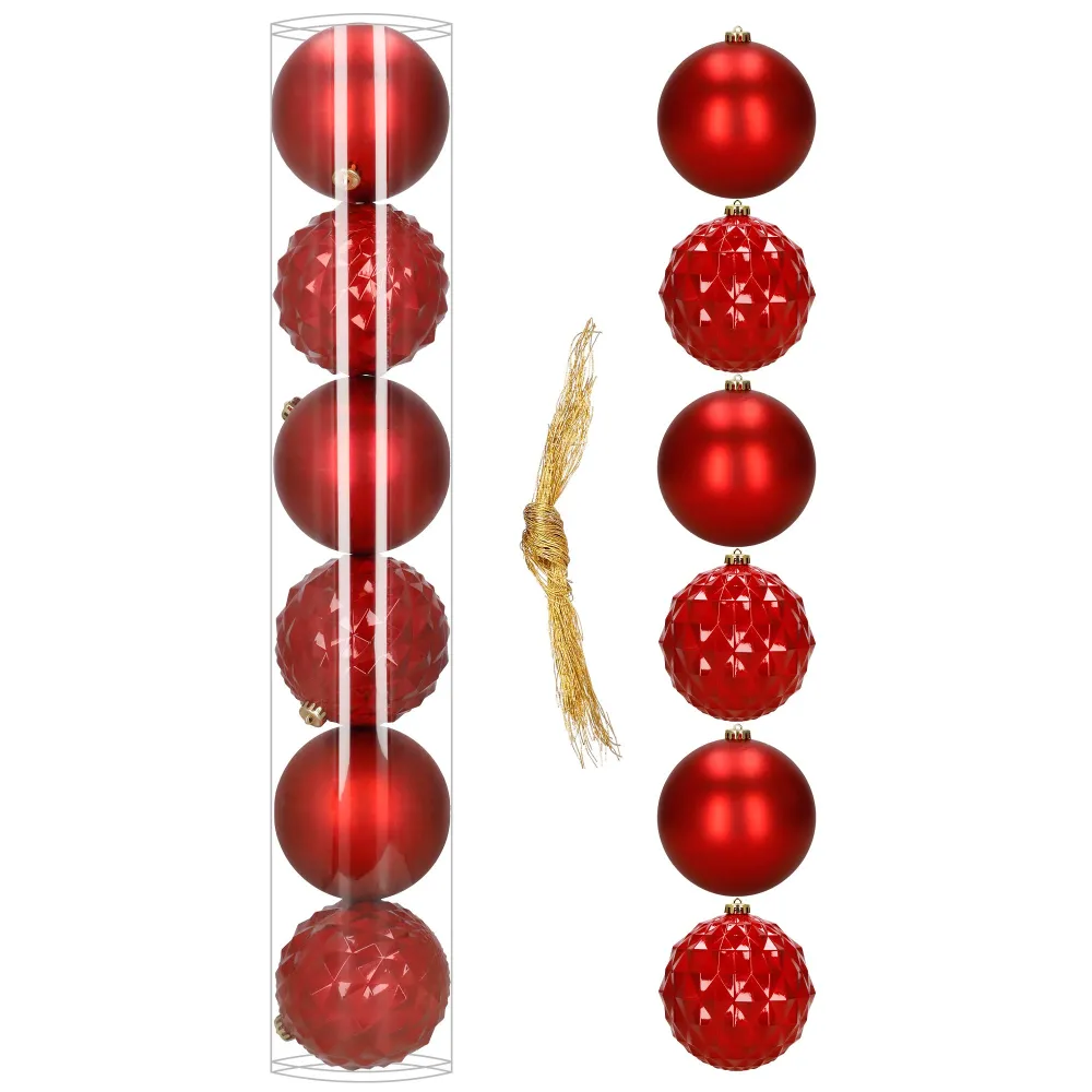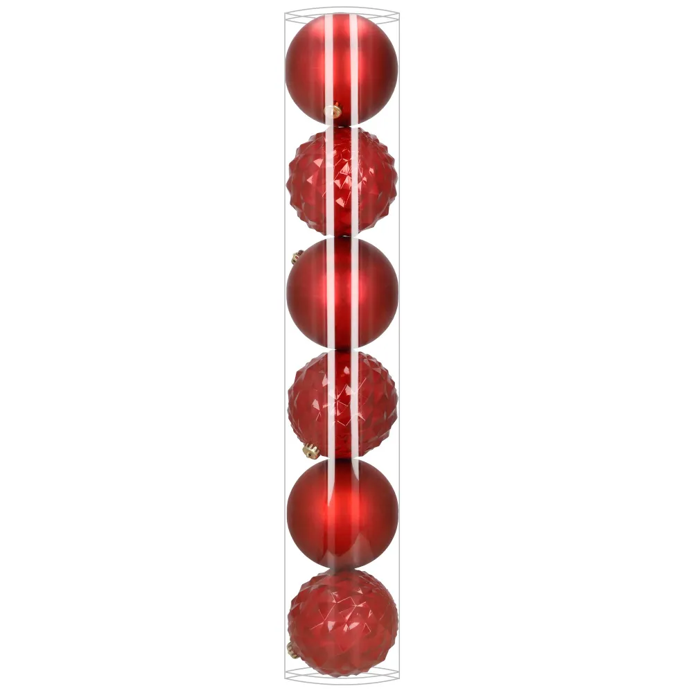 Elegantná sada vianočných ozdôb v červenom mixe dodá vašej výzdobe tradičný a slávnostný nádych. Gule s priemerom 13,5 cm sú ideálne na vianočný stromček aj ako výrazná dekorácia. Vyrobené z nerozbitného plastu, vhodné na vnútorné i vonkajšie použitie. Súčasťou balenia sú pútka na zavesenie. Celkom 6 kusov v sade.