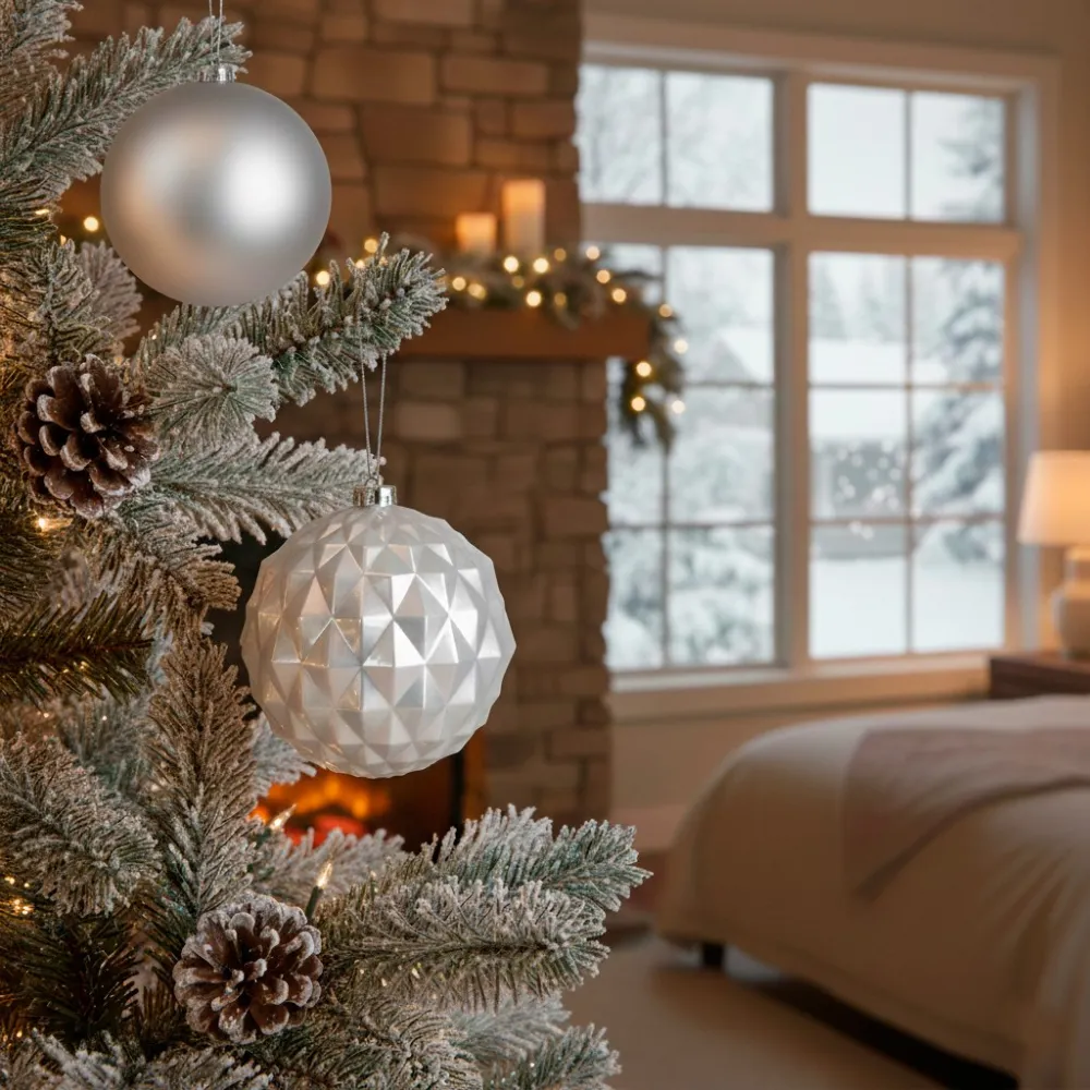 - Elegantný strieborný mix pre modernú vianočnú výzdobu