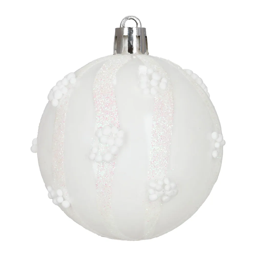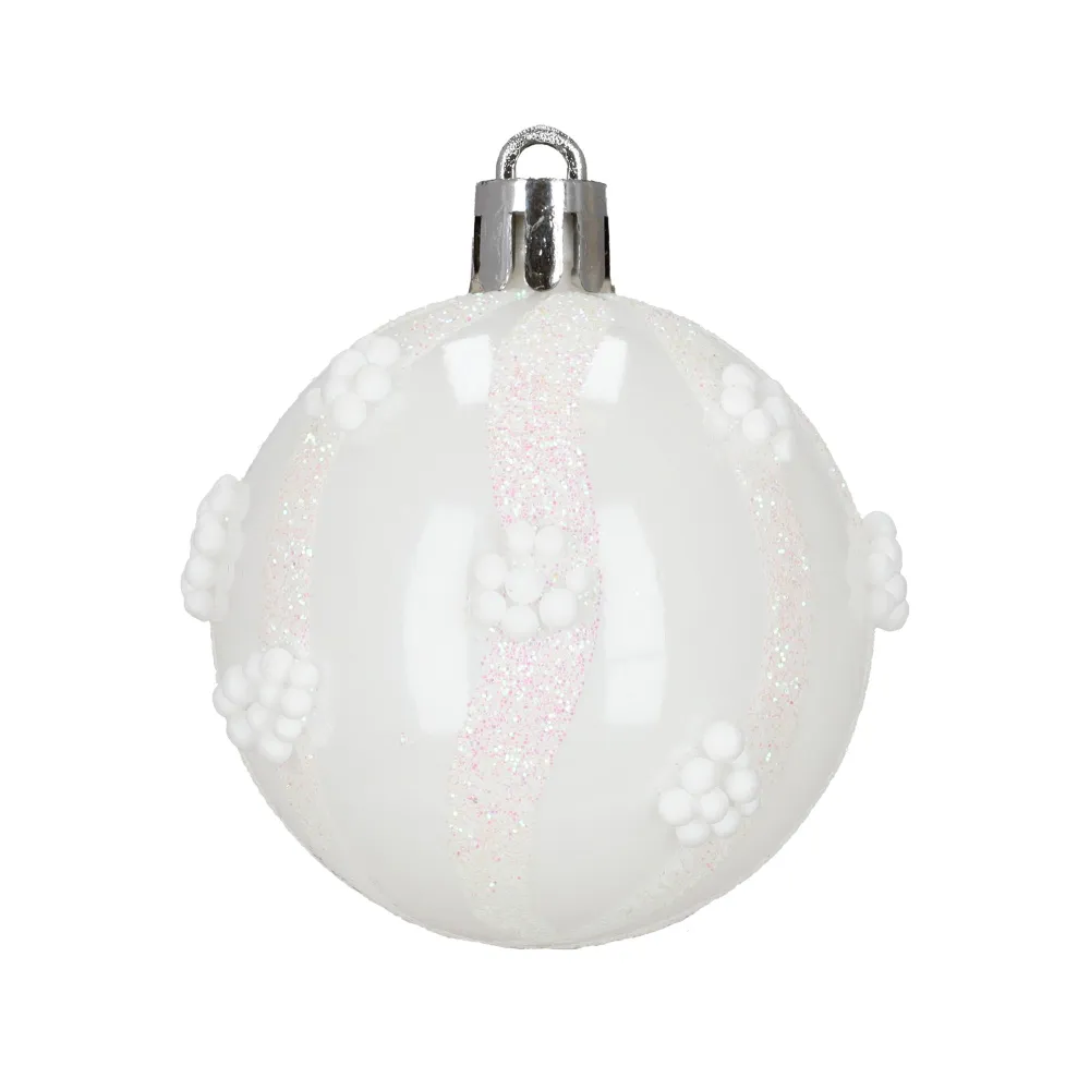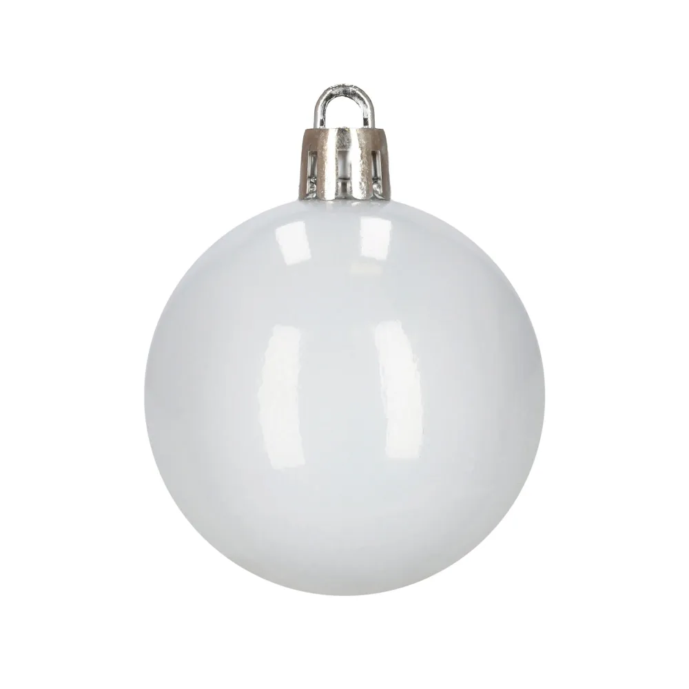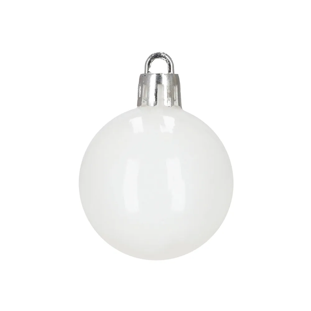 Sada bielych vianočných ozdôb v rôznych tvaroch a povrchových úpravách dodá výzdobe elegantný a zimný vzhľad. Obsahuje ľahké, nerozbitné plastové gule, vločky aj hviezdy s pútkami pre ľahké zavesenie. Vhodné na stromček aj ako dekorácia do interiéru či exteriéru. Priemery gulí: 3,5 cm, 4,5 cm a 5,5 cm.