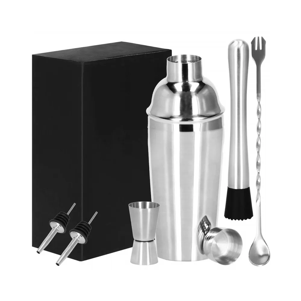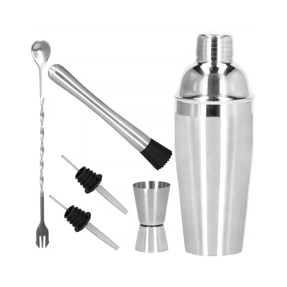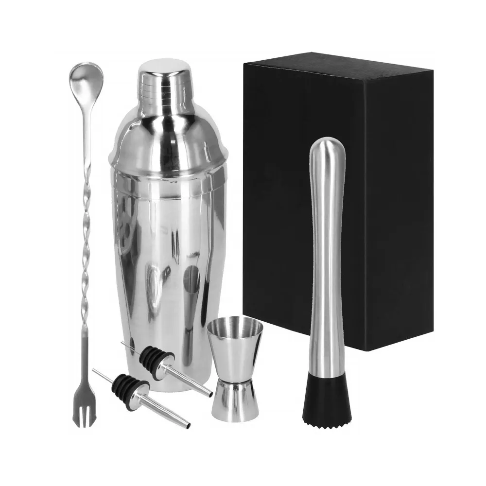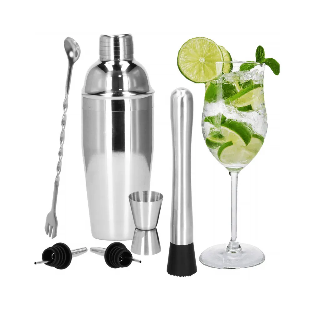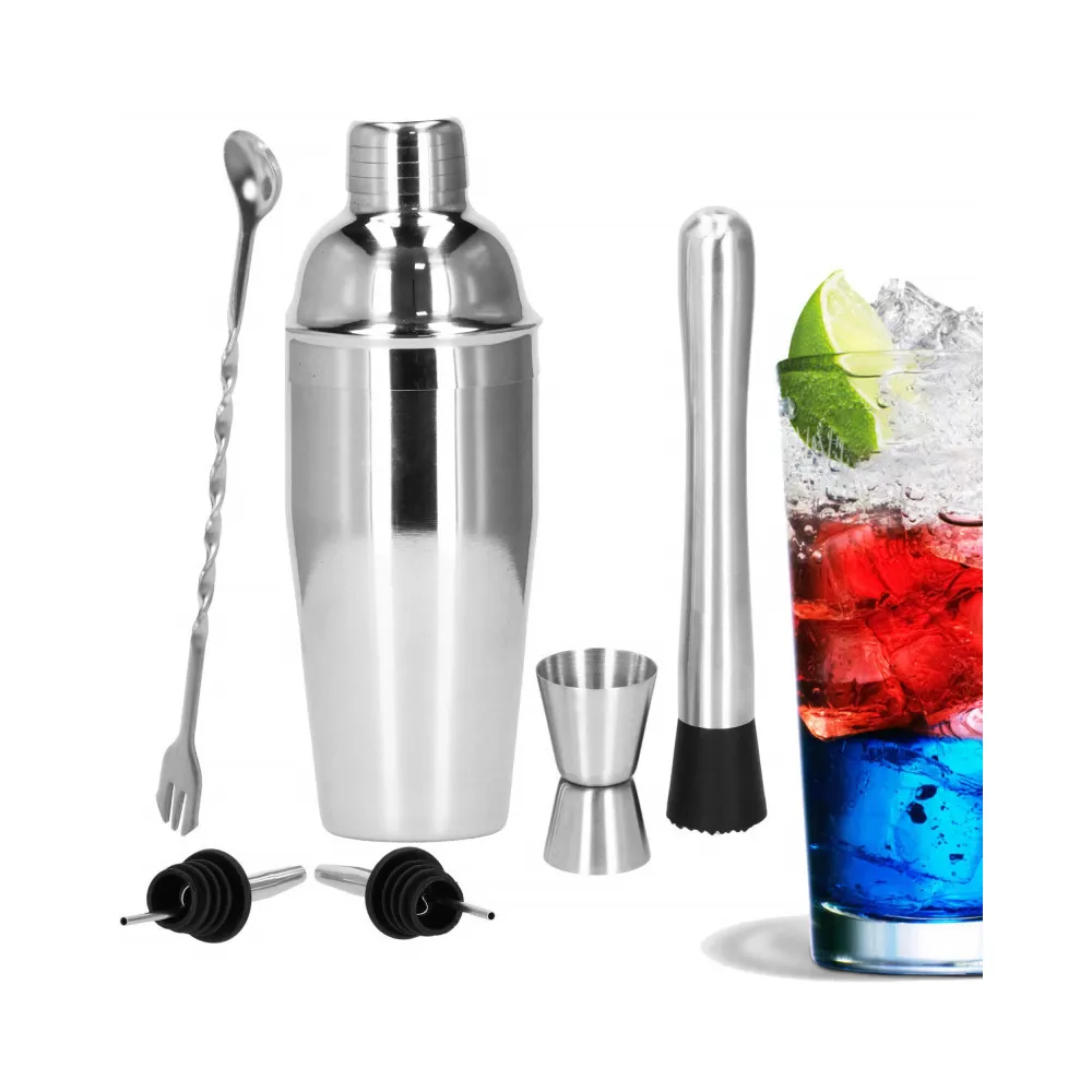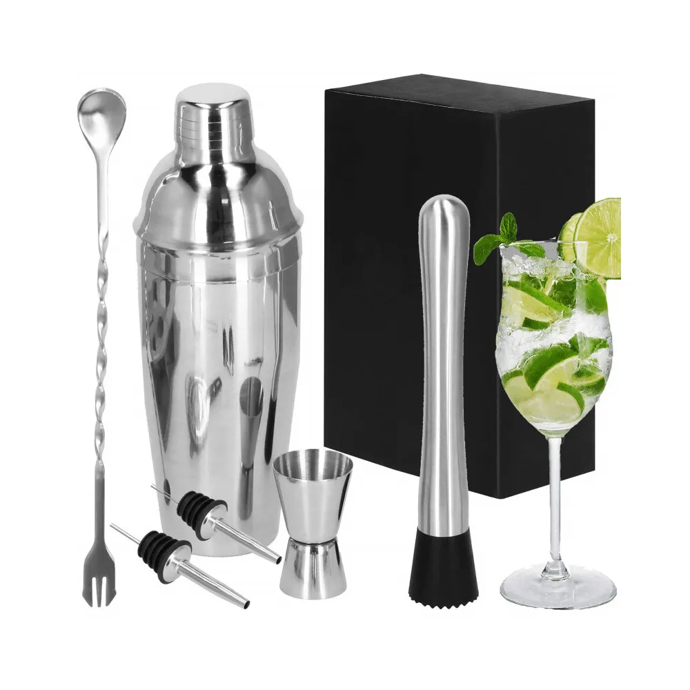 Profesionálna sada na prípravu drinkov, ktorá obsahuje 6 dielov. Nerezová oceľ, certifikovaný materiál na prácu s potravinami. Kvalitné spracovanie, elegantný povrch. Zlepšuje barmanské zručnosti. Rozširuje možnosti prípravy koktailov. Kompletný set na pre každú oslavu.