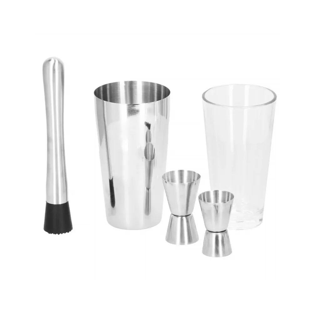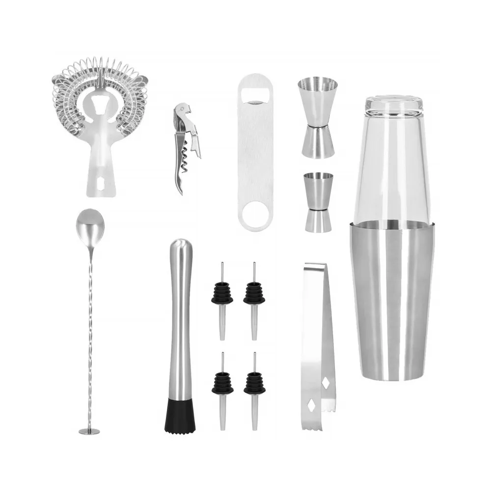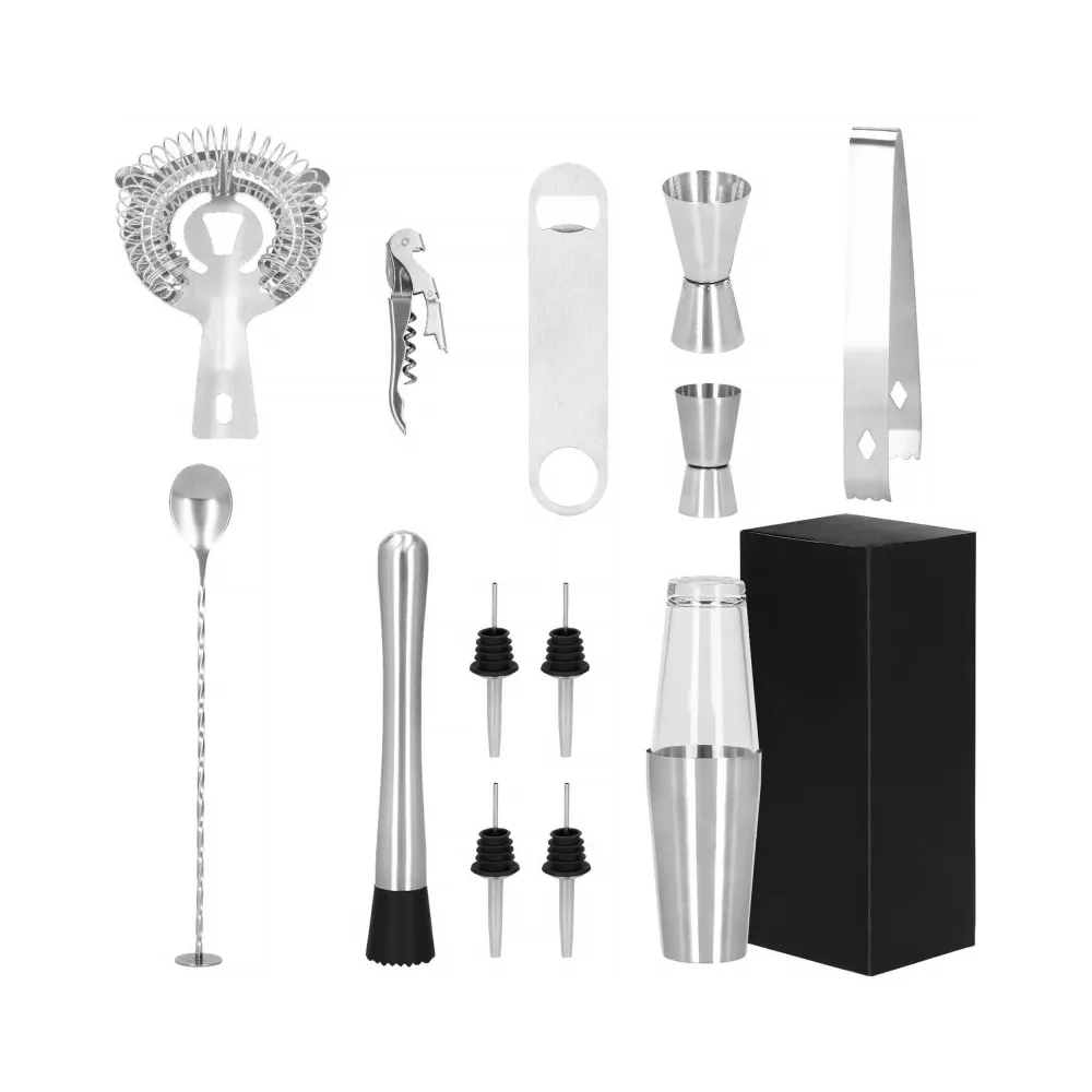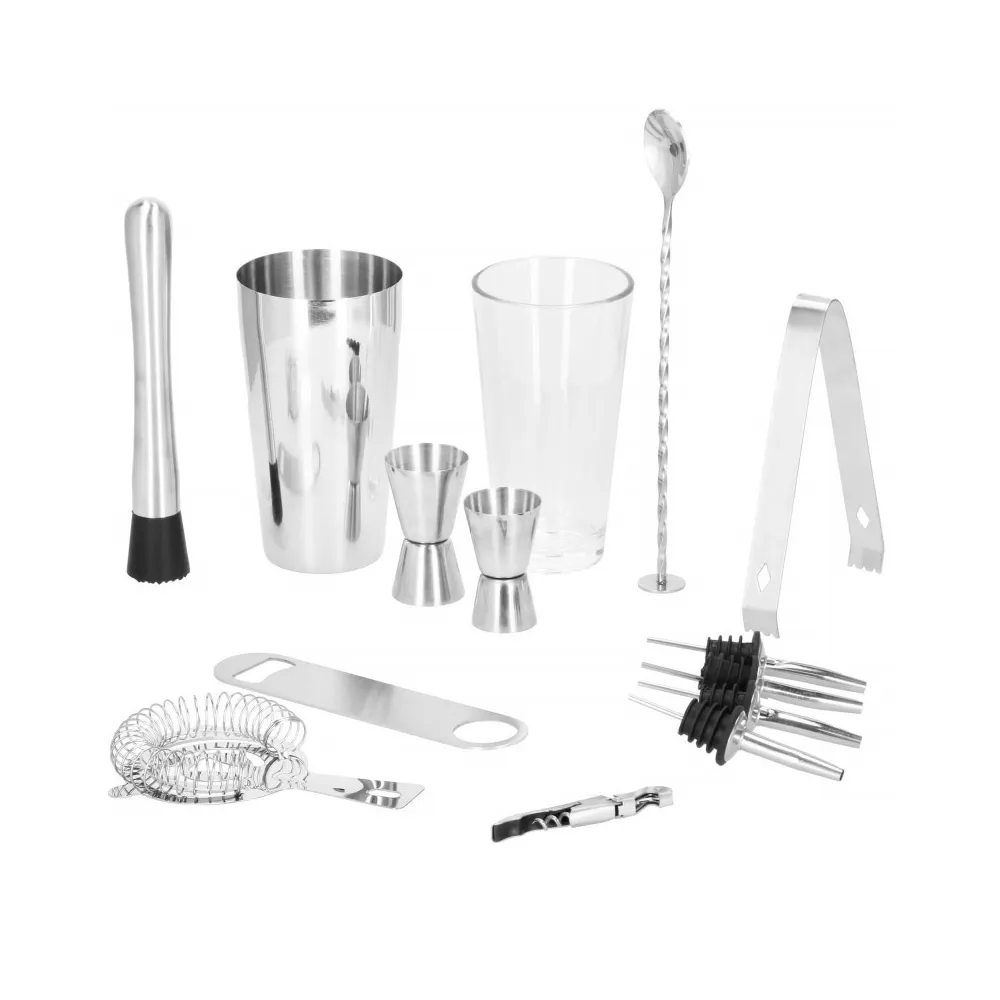 Profesionálna sada na prípravu drinkov, ktorá obsahuje 14 dielov. Nerezová oceľ, certifikovaný materiál na prácu s potravinami. Kvalitné spracovanie, elegantný povrch. Zlepšuje barmanské zručnosti. Rozširuje možnosti prípravy koktailov. Kompletný set na pre každú oslavu.