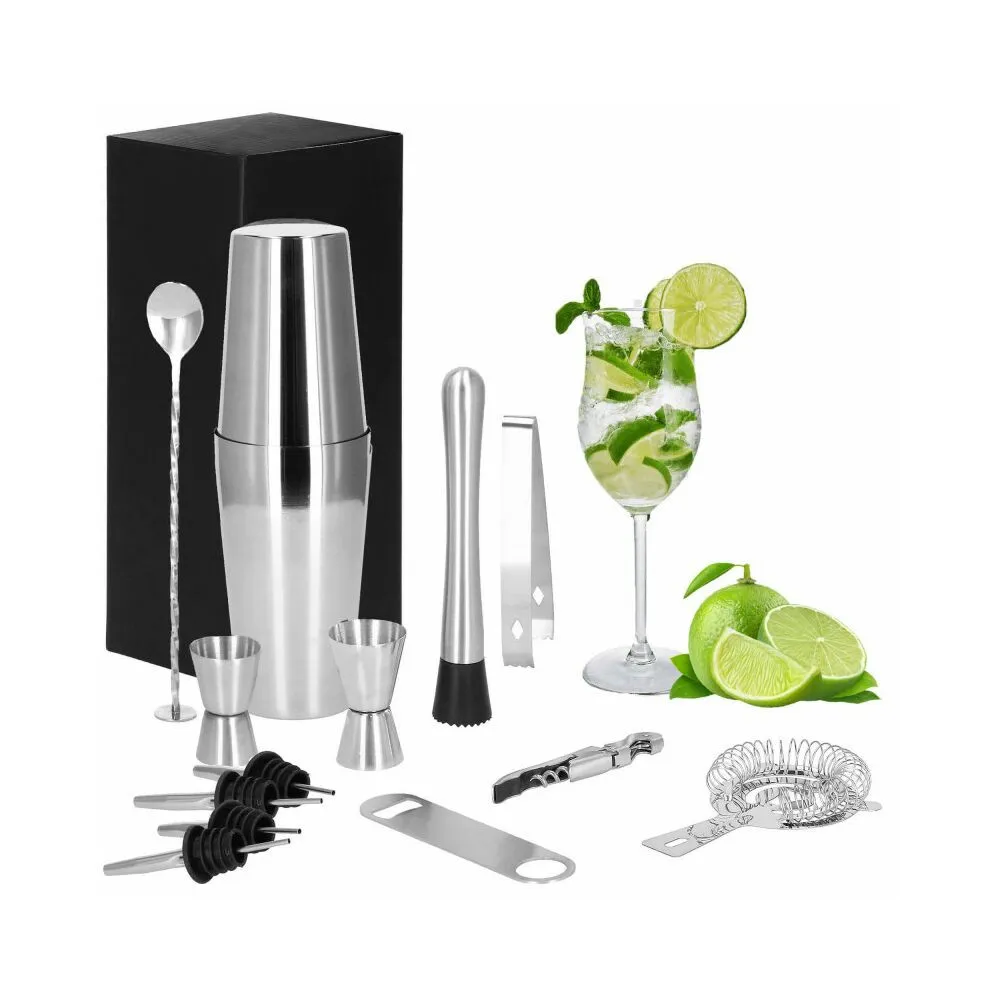 Profesionálna sada na prípravu drinkov, ktorá obsahuje 14 dielov. Nerezová oceľ, certifikovaný materiál na prácu s potravinami. Kvalitné spracovanie, elegantný povrch. Zlepšuje barmanské zručnosti. Rozširuje možnosti prípravy koktailov. Kompletný set na pre každú oslavu.