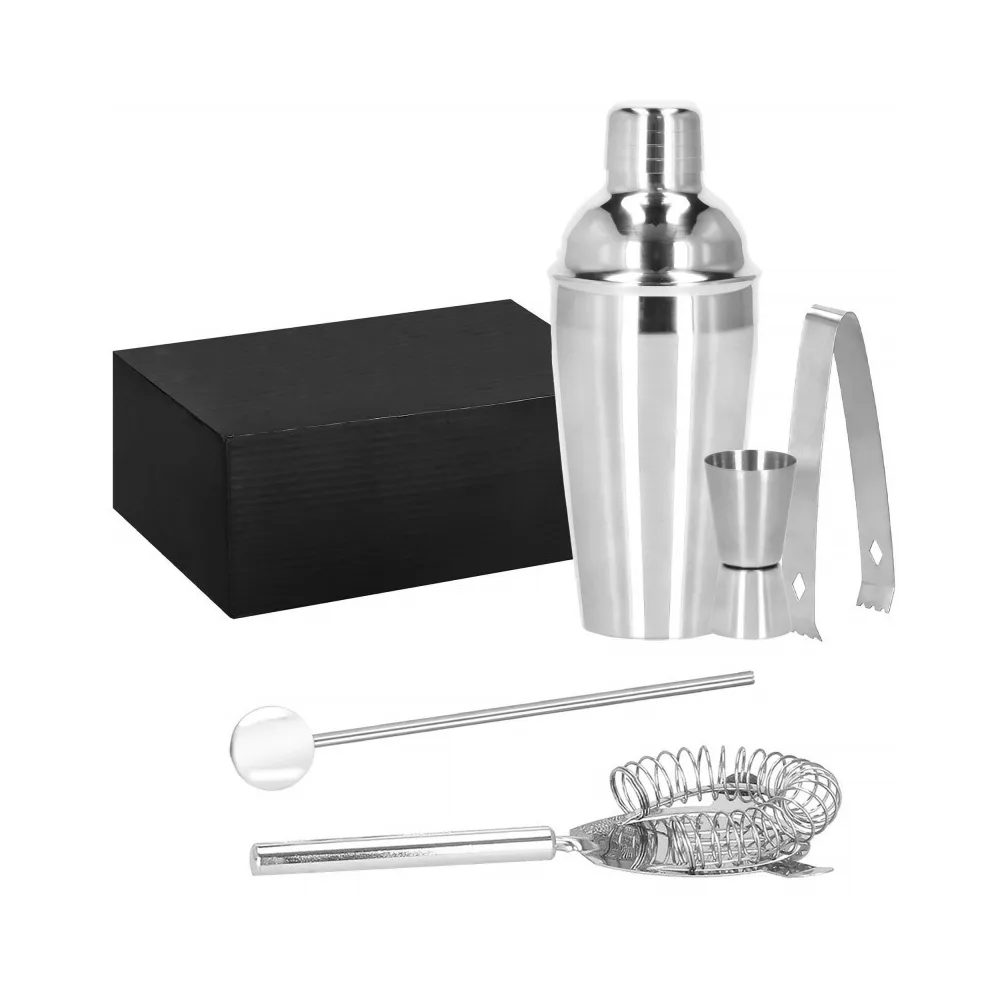 Profesionálna sada na prípravu drinkov, ktorá obsahuje 5 dielov. Nerezová oceľ, certifikovaný materiál na prácu s potravinami. Kvalitné spracovanie, elegantný povrch. Zlepšuje barmanské zručnosti. Rozširuje možnosti prípravy koktailov. Kompletný set na pre každú oslavu.