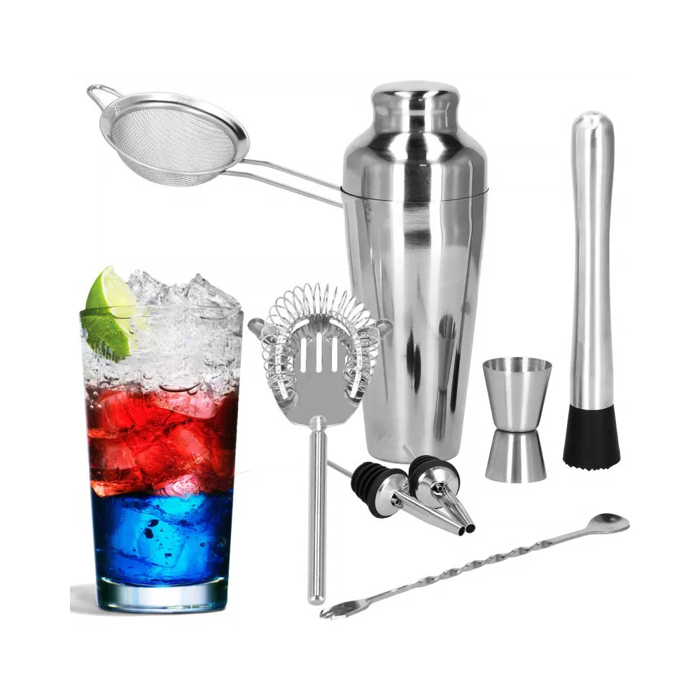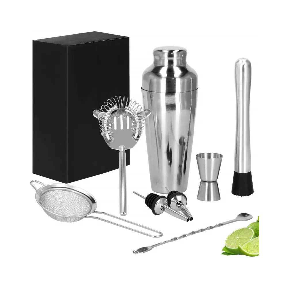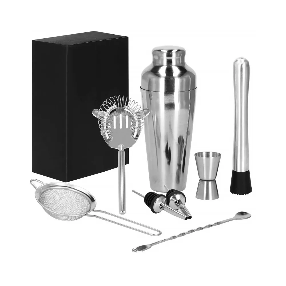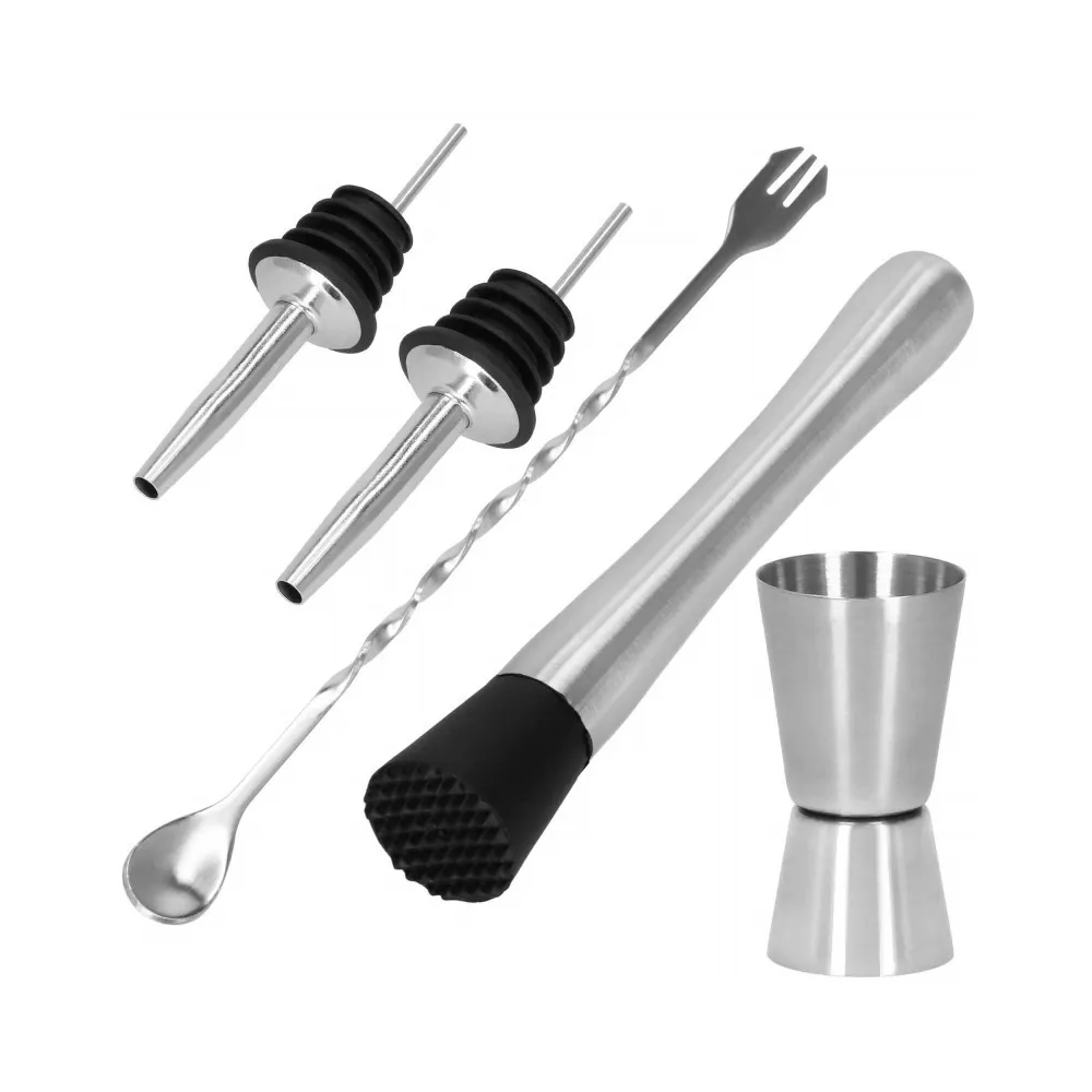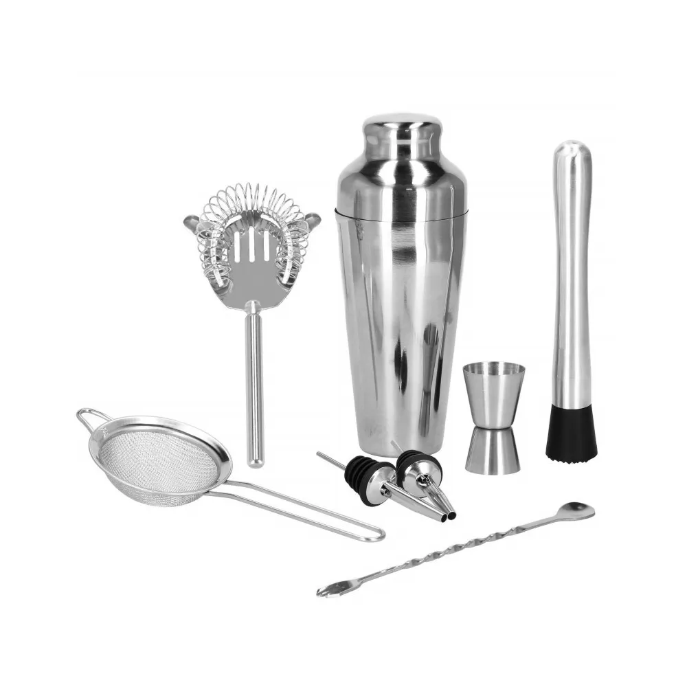 Profesionálna sada na prípravu drinkov, ktorá obsahuje 8 dielov. Nerezová oceľ, certifikovaný materiál na prácu s potravinami. Kvalitné spracovanie, elegantný povrch. Zlepšuje barmanské zručnosti. Rozširuje možnosti prípravy koktailov. Kompletný set na pre každú oslavu.