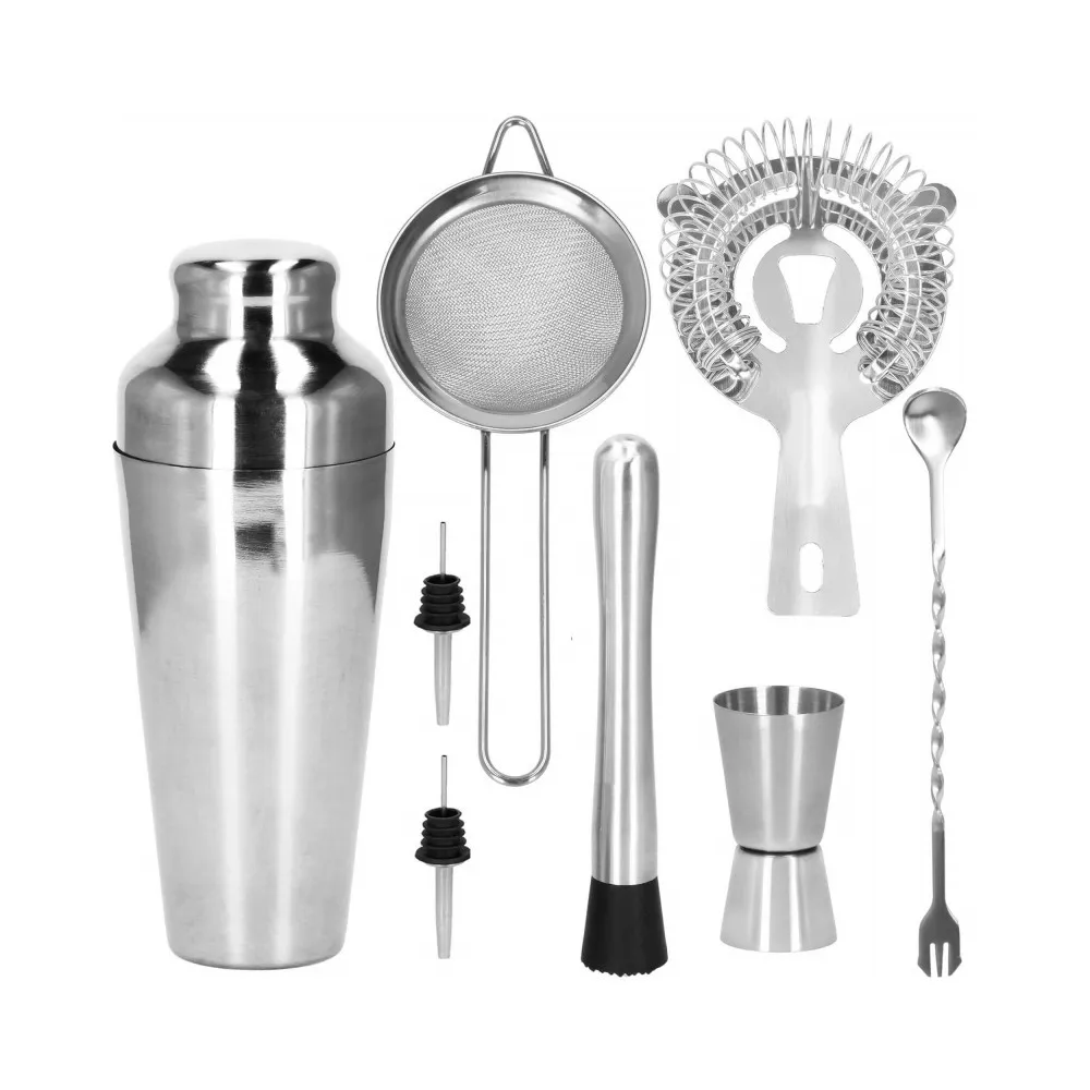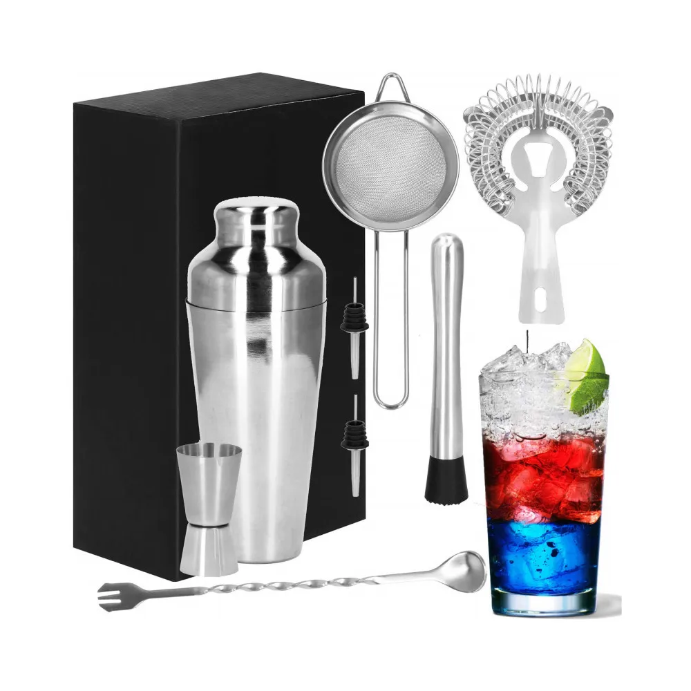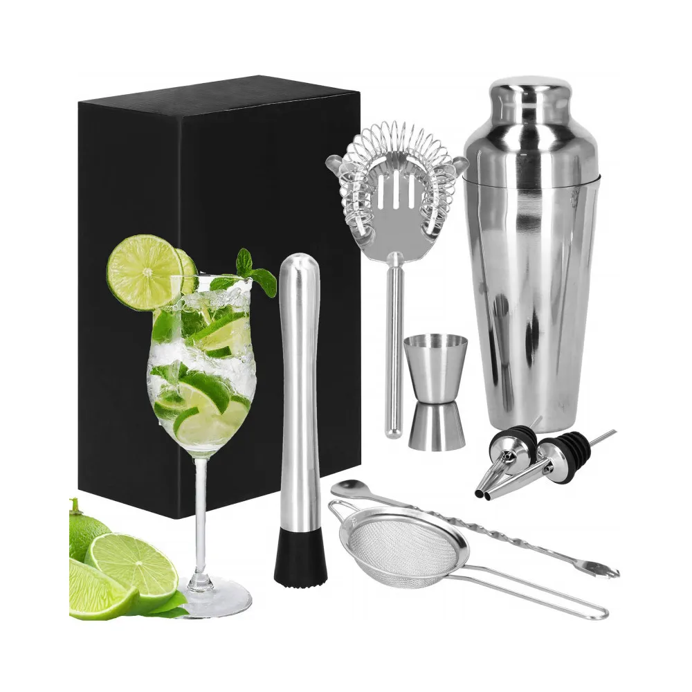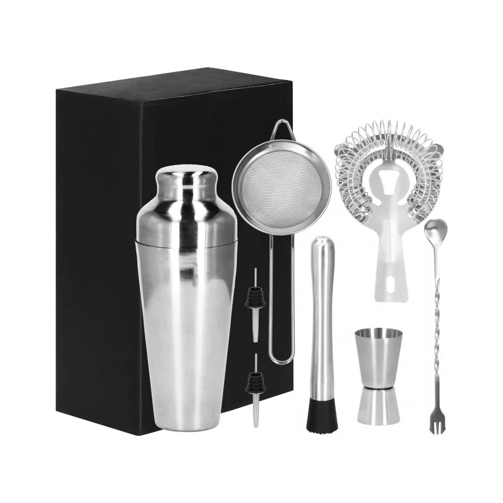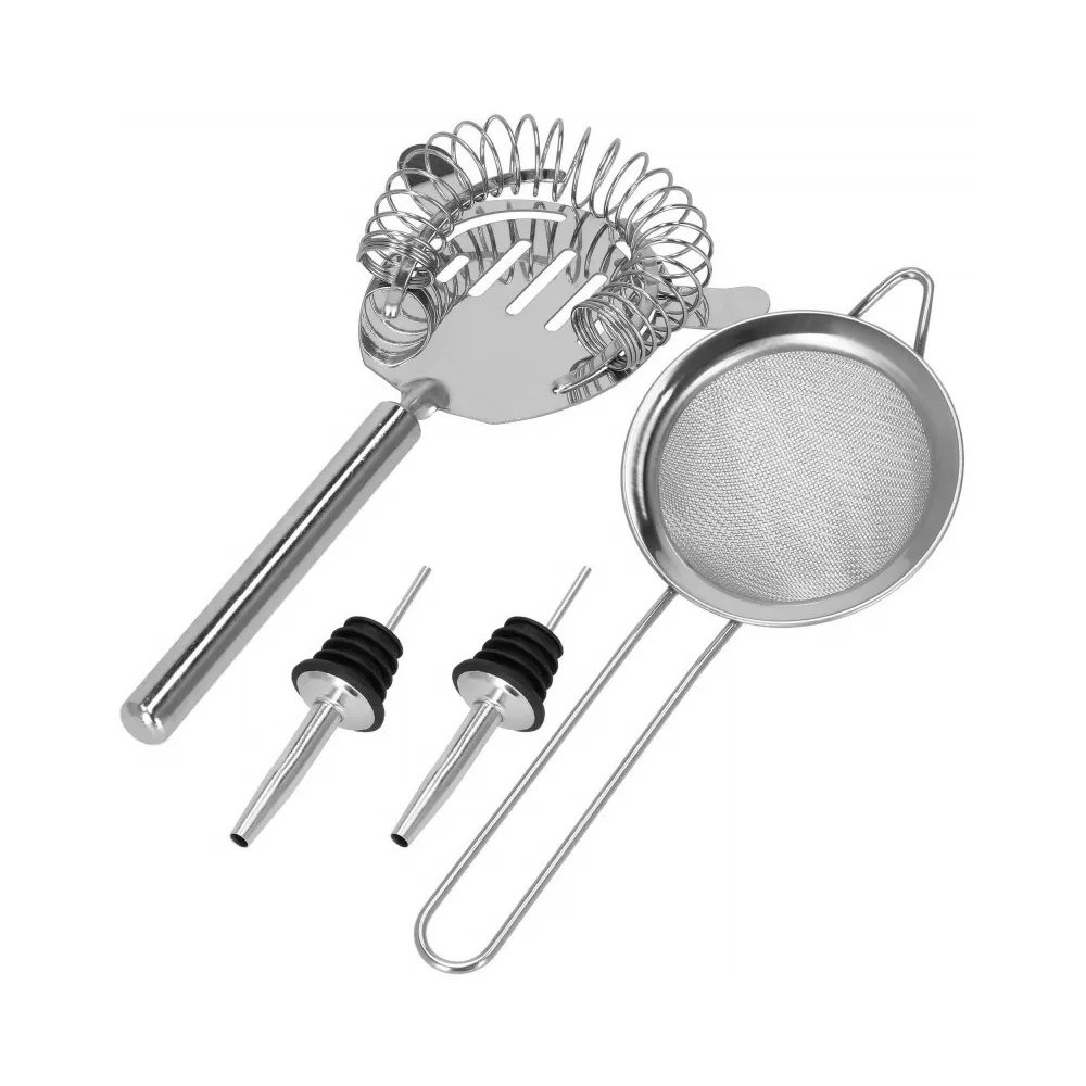Profesionálna sada na prípravu drinkov, ktorá obsahuje 8 dielov. Nerezová oceľ, certifikovaný materiál na prácu s potravinami. Kvalitné spracovanie, elegantný povrch. Zlepšuje barmanské zručnosti. Rozširuje možnosti prípravy koktailov. Kompletný set na pre každú oslavu.