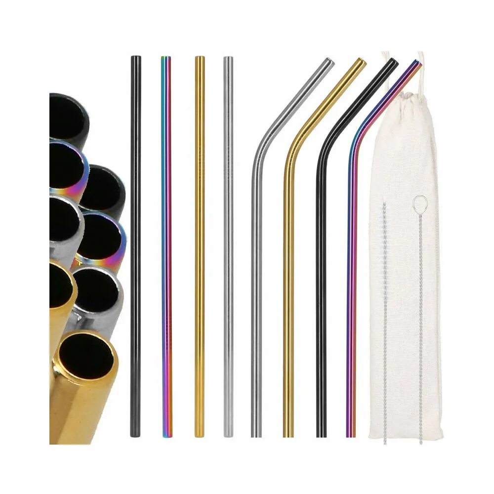 Kovové slamky na pitie sú ekologickou alternatívou, ktorá môže nahradiť klasické papierové slamky. Nami prezentovaná sada obsahuje sadu 8 slamiek s 2 kefkami na ich čistenie a plátené puzdro na uloženie všetkých prvkov. Nerezová oceľ , odolné proti korózii, ľahko sa drží, neobsahujú škodlivé látky, kefy sú súčasťou sady.