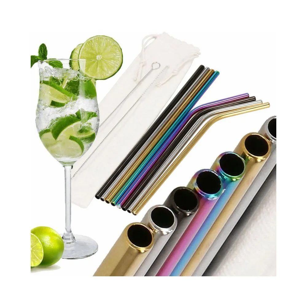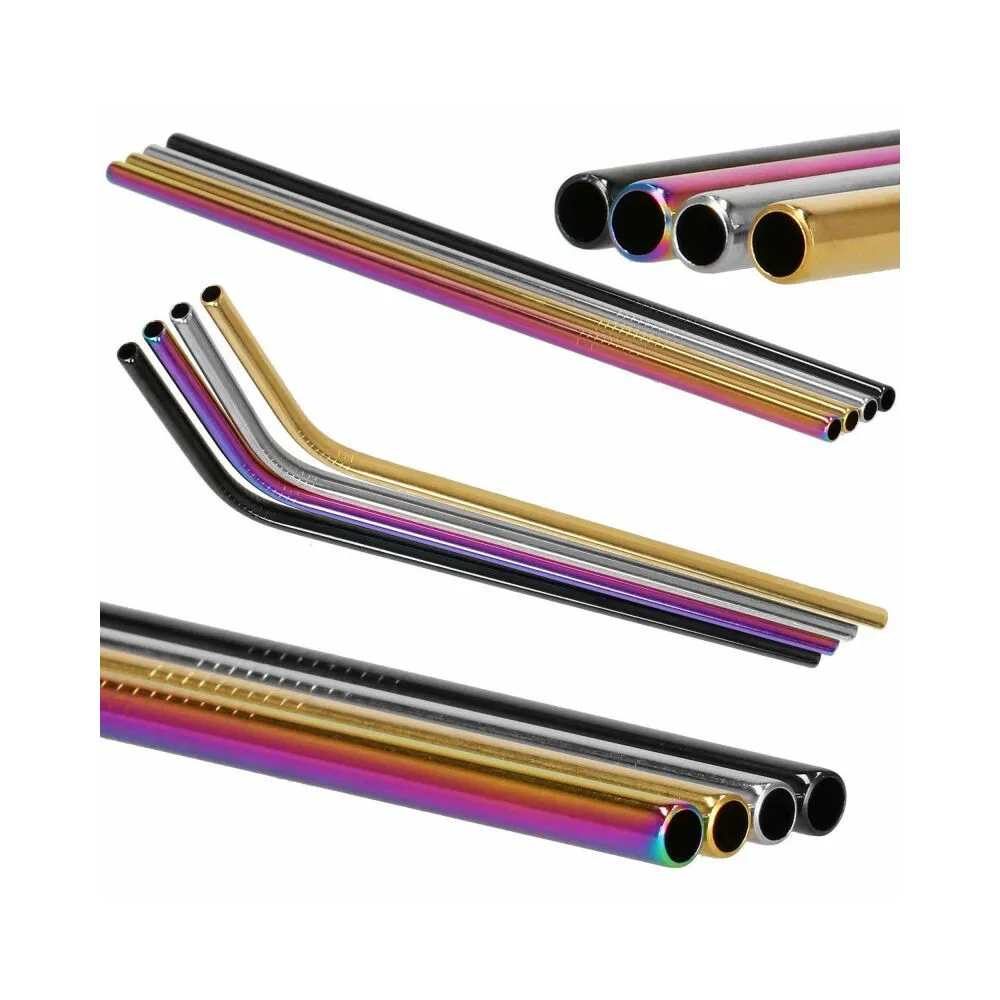 Sada 8ks kovových slamiek na miešané nápoje . Ekologická alternatíva. Zdravotne nezávadné, neobsahuje škodlivé látky. Odolná nerezová oceľ, štýlové farby. Dva druhy - zahnuté a rovné. V sade tiež 2 čistiace kefky a plátené puzdro s lemom. Vhodné aj na cesty.