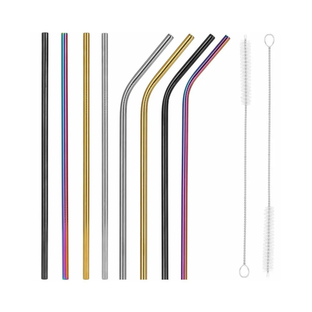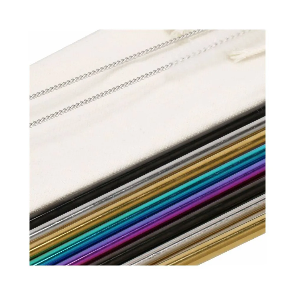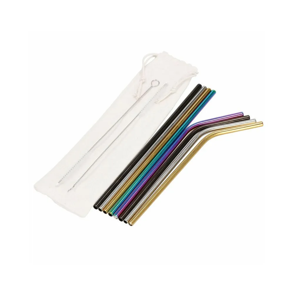 Sada 8ks kovových slamiek na miešané nápoje. Ekologická alternatíva. Zdravotne nezávadné, neobsahuje škodlivé látky. Odolná nerezová oceľ, štýlové farby. Dva druhy - zahnuté a rovné. V sade tiež 2 čistiace kefky a plátené puzdro s lemom. Vhodné aj na cesty.