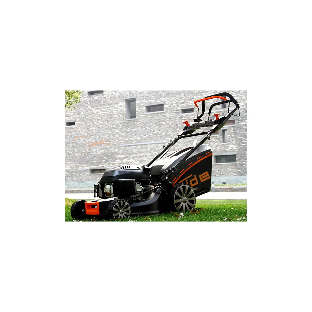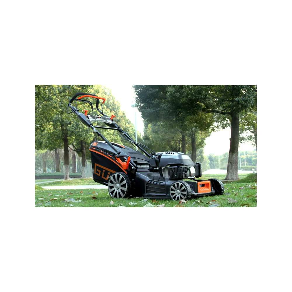 Najštýlovejšia kosačka s pojazdom zo série PREMIUM 2020 značky Güde so záberom 480 mm, centrálnym nastavením výšky kosenia, mulčovacím nožom, mulčovacou záslepkou a bočným vyhadzovaním. zvýšenie pohodlia pri práci dopomáhajú veľké kolieska uložené na ložiskách, ktoré majú puklice z oboch strán, čím sa zabráni zachytávaniu pokosenej trávy do kolies a následnému problému s čistením. Zároveň však zostávajú štýlové a dopĺňajú celkový dojem kosačiek. vrátane náhonového remeňa. Čistenie noža a vnútornej časti skeletu je jednoduché vďaka rýchlospojke na pripojenie záhradnej hadice.
